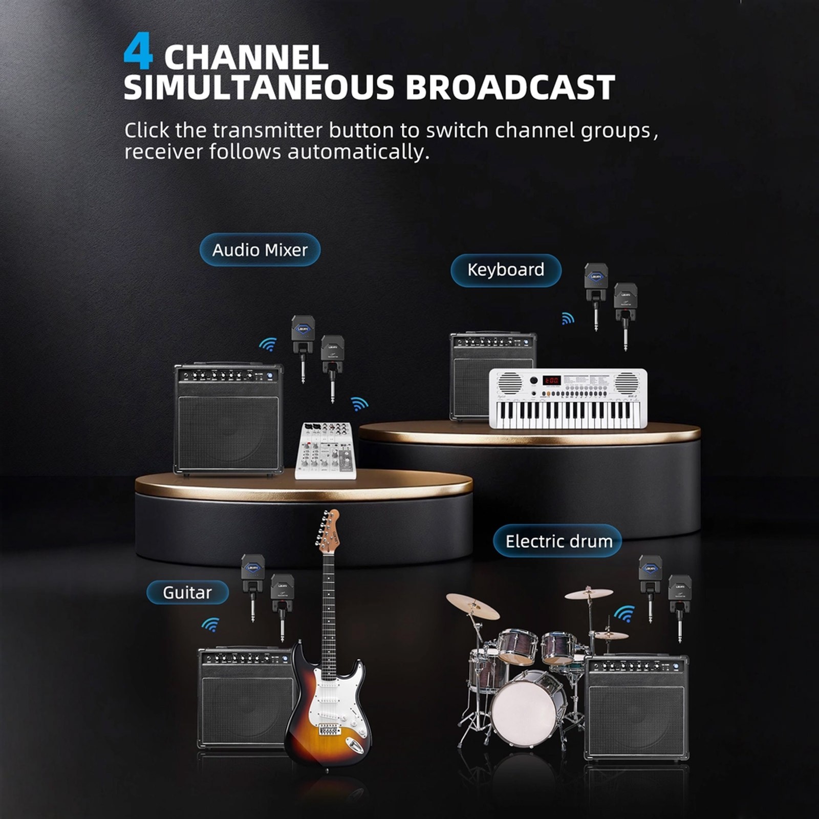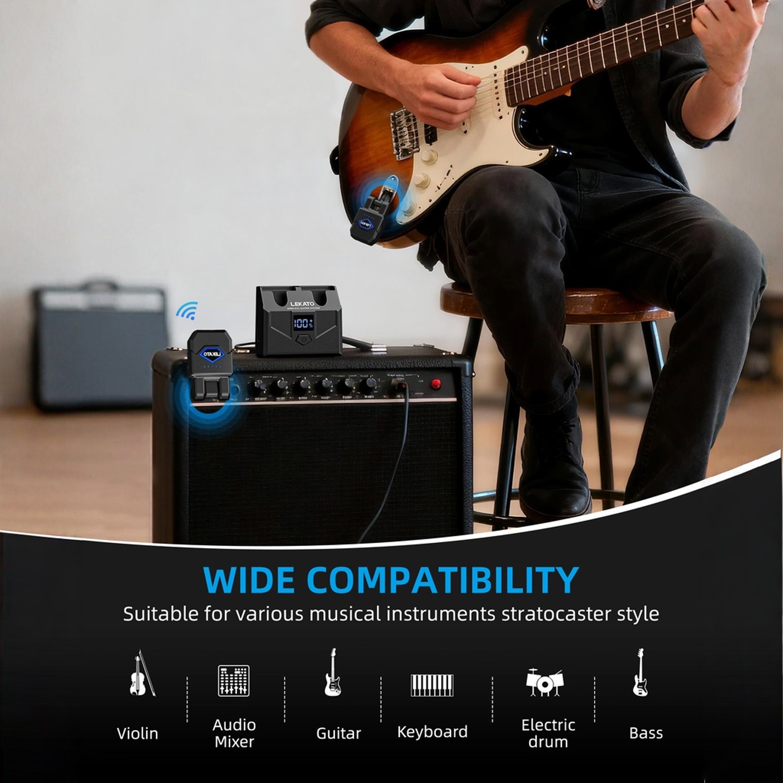 LEKATO 2.4GHz Wireless Guitar Transmitter Receiver System with Charging Box