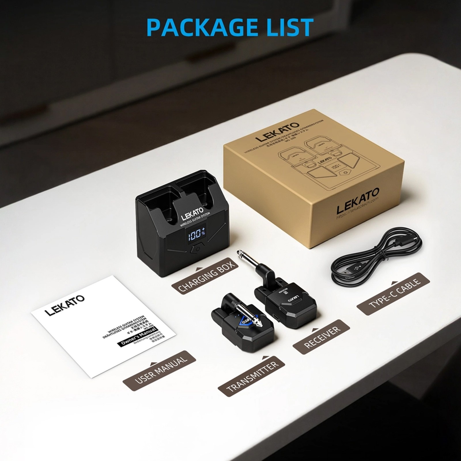 как выглядит LEKATO 2.4GHz Wireless Guitar Transmitter Receiver System with Charging Box фото
