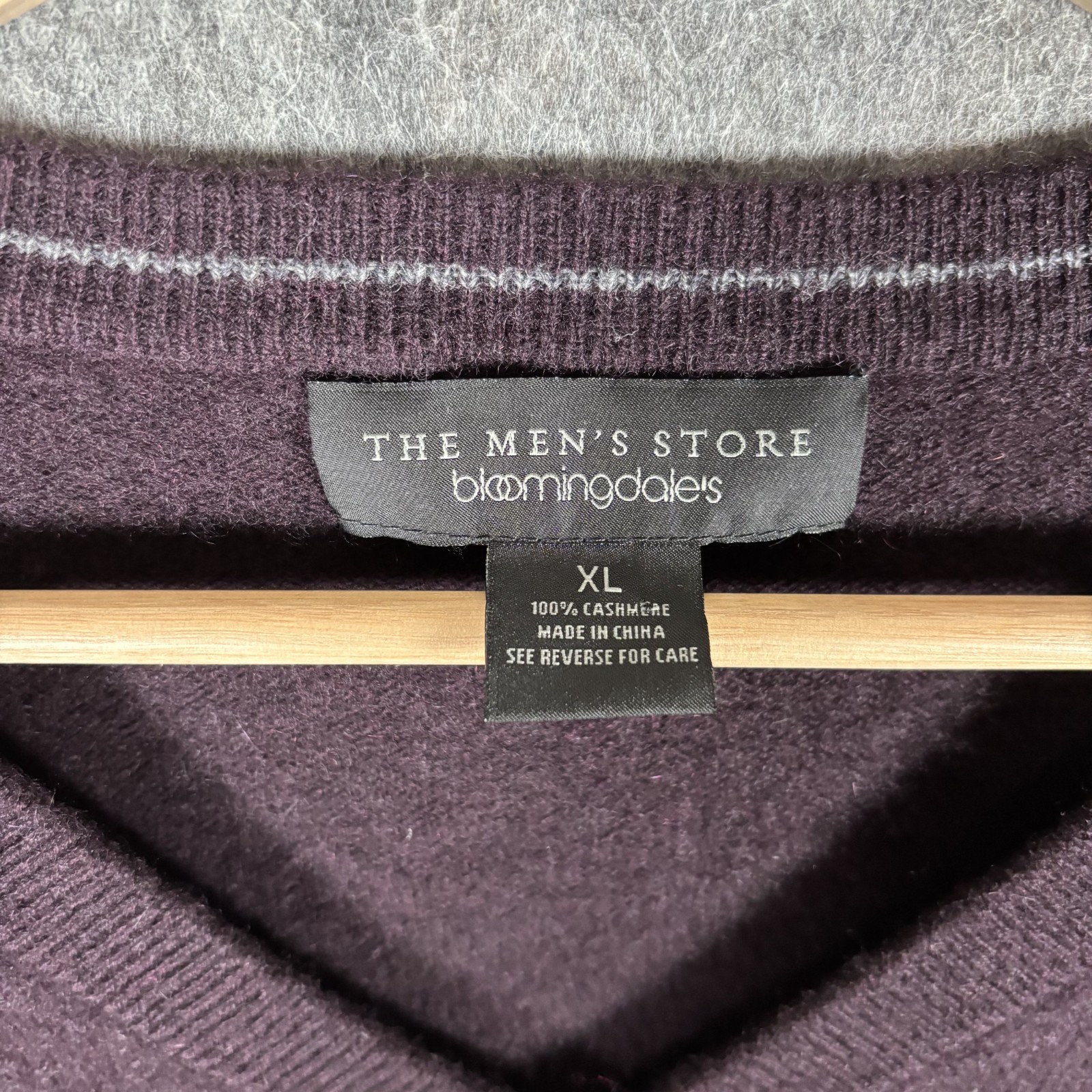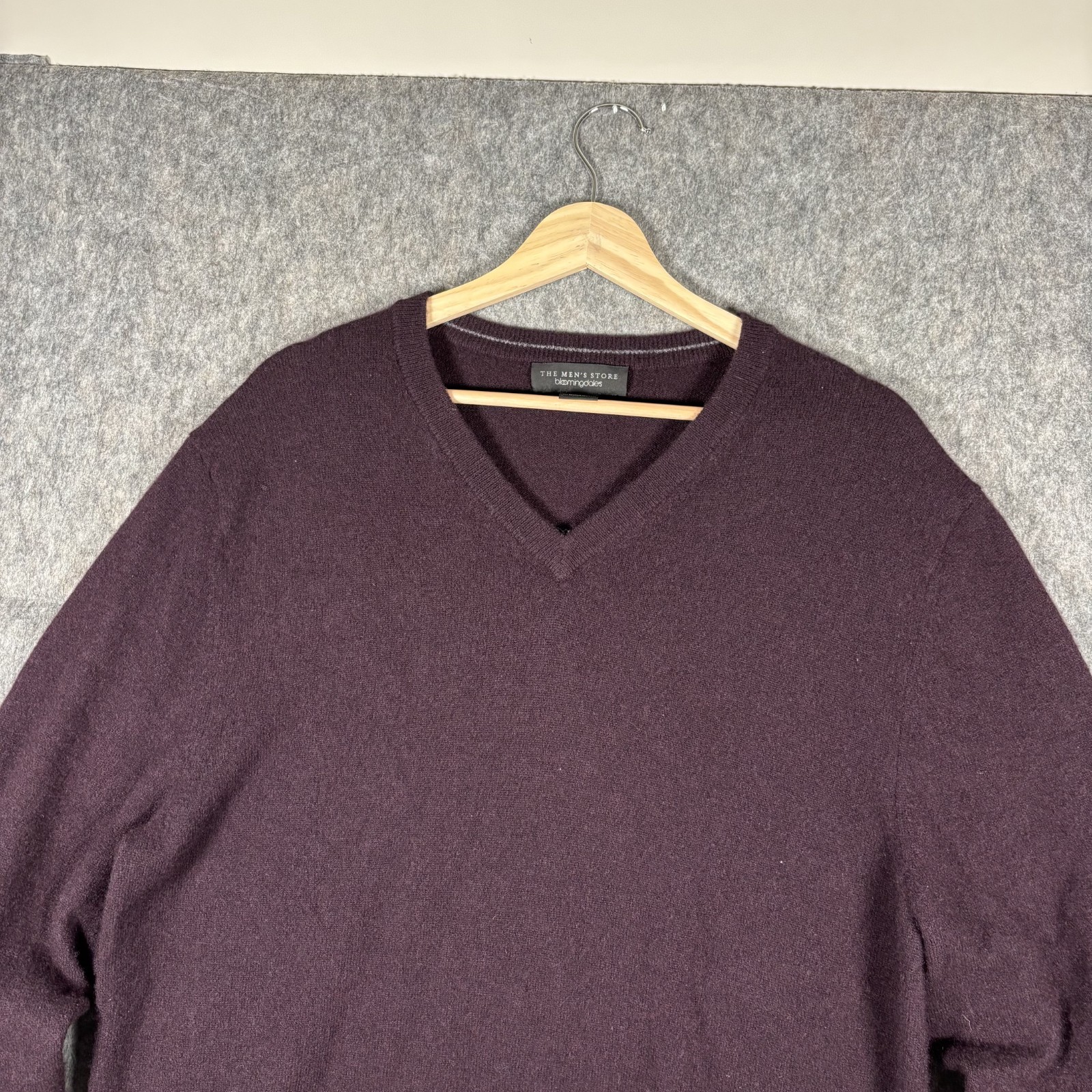 как выглядит Bloomingdales Sweater Mens XL Purple V Neck Cashmere Pullover фото