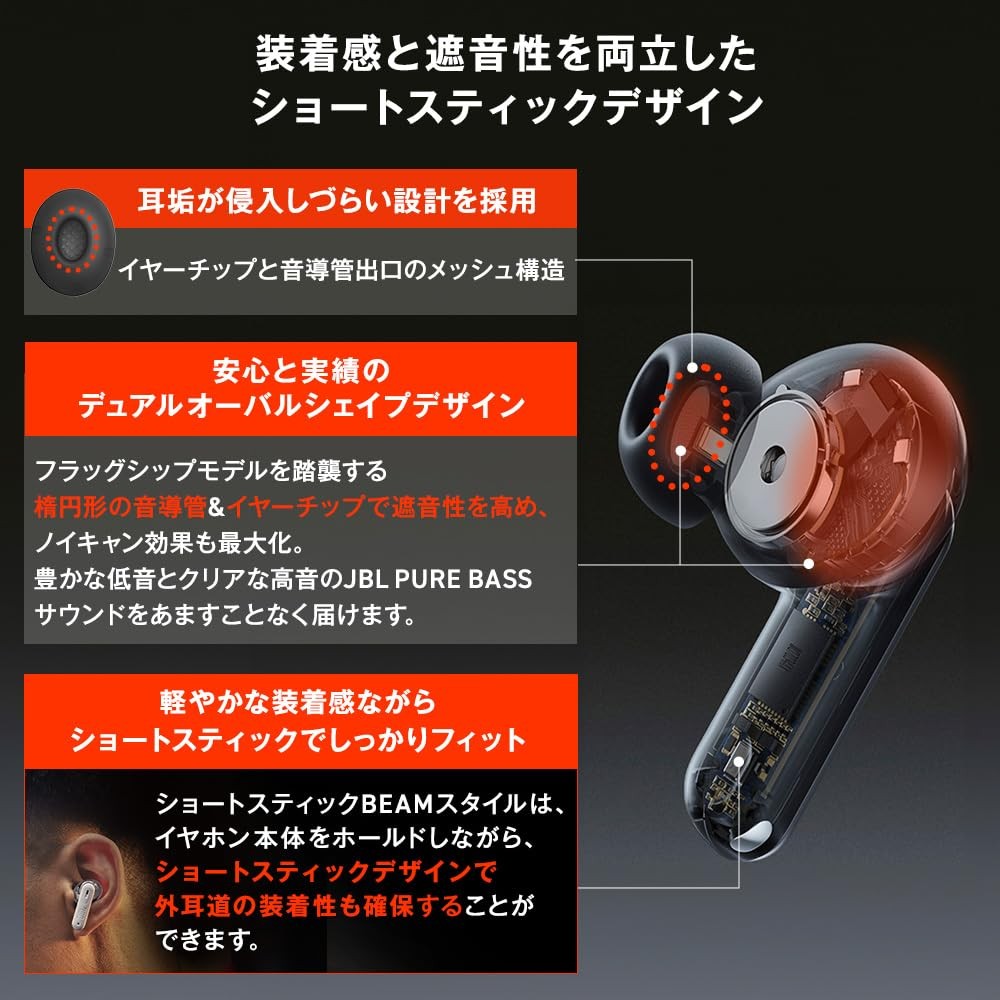 JBL Tune Beam 2 Wireless Earbuds Hybrid Noise Cancelling Bluetooth Ghost Black