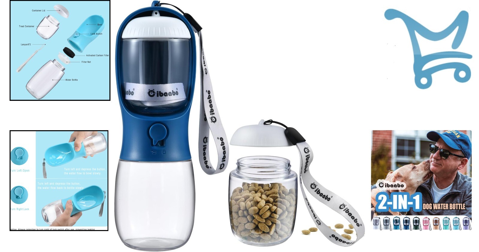 как выглядит Dog Water Bottle with Food Container Portable Pet Dispenser Travel Puppy фото