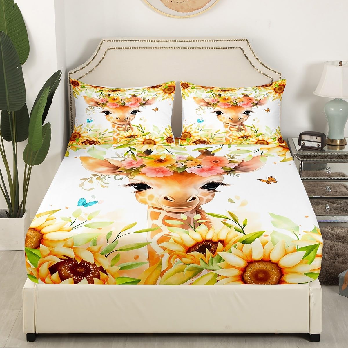 Cute Giraffe Fitted Twin Size Cartoon Animal Bedding Set for Boys Girls Teens...