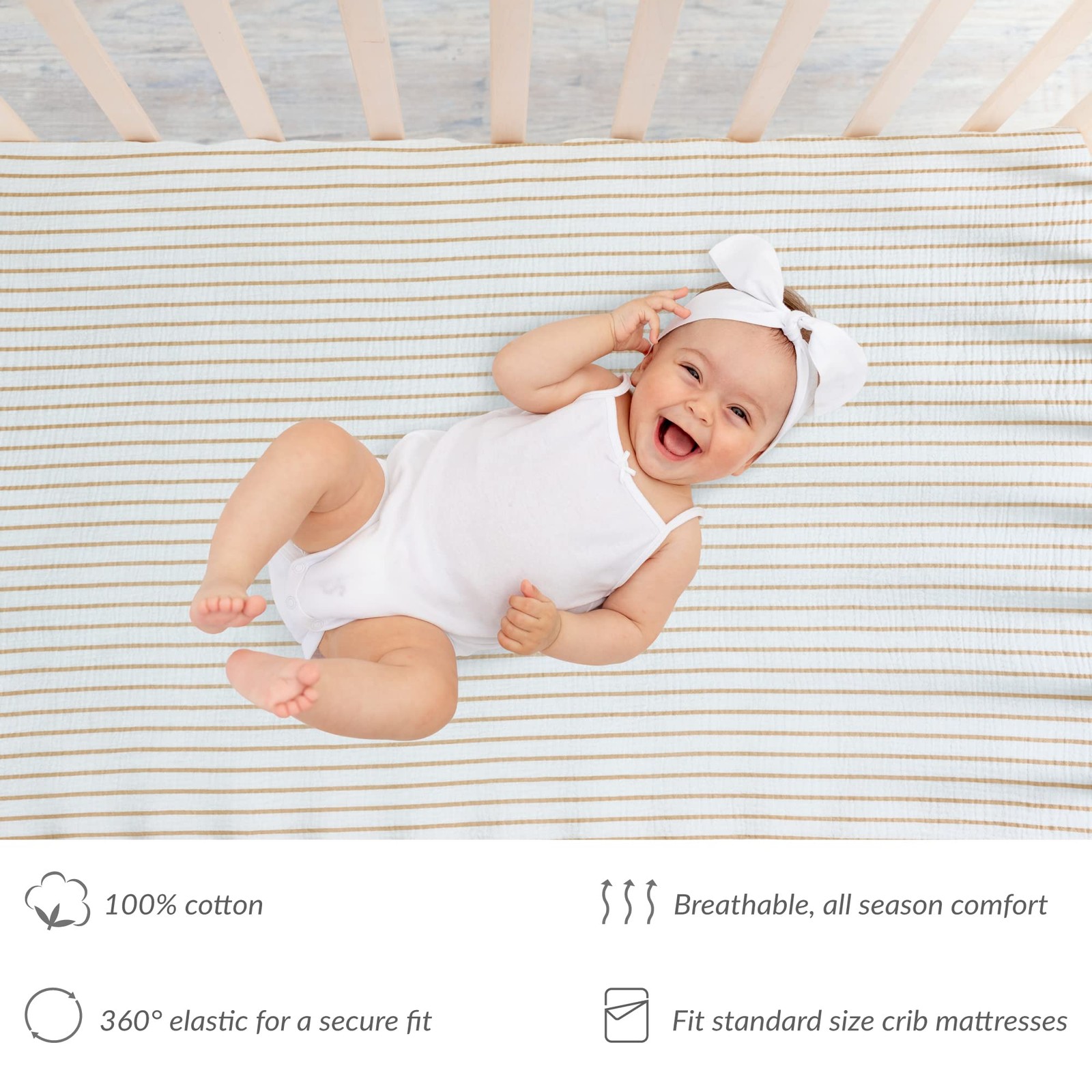 Muslin Fitted Crib Sheet, Soft and Breathable Baby Crib Sheet for Standard Cr...