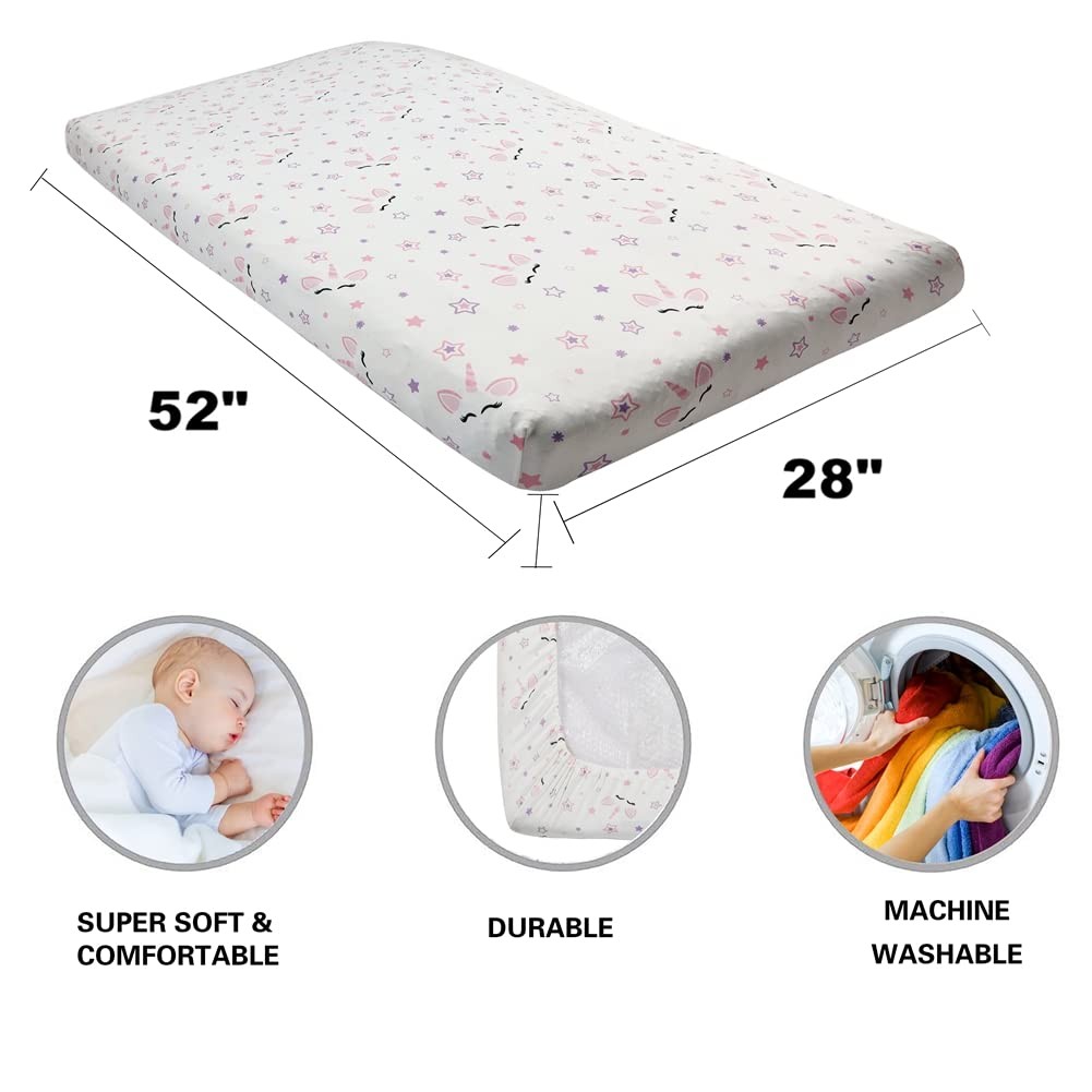4 Pack Soft Baby Girl Crib Sheets for Standard Crib Mattress Unicron Rainbow ...