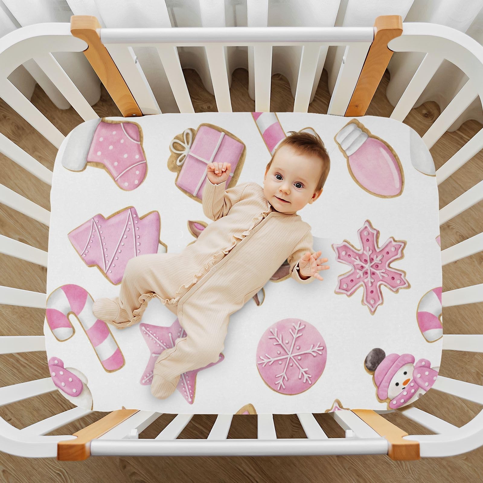 Pink Christmas Cookies Fitted Crib Sheet for Boys Girls Baby Crib Sheet Crib ...
