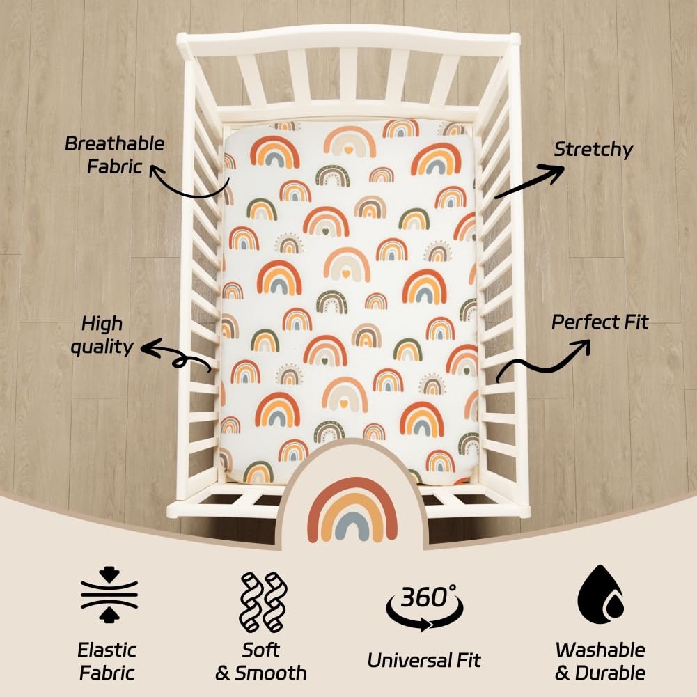 4 Pack Crib Sheets Boho Nursery Sheets Sunshine and Rainbow Desdign Neutral U...