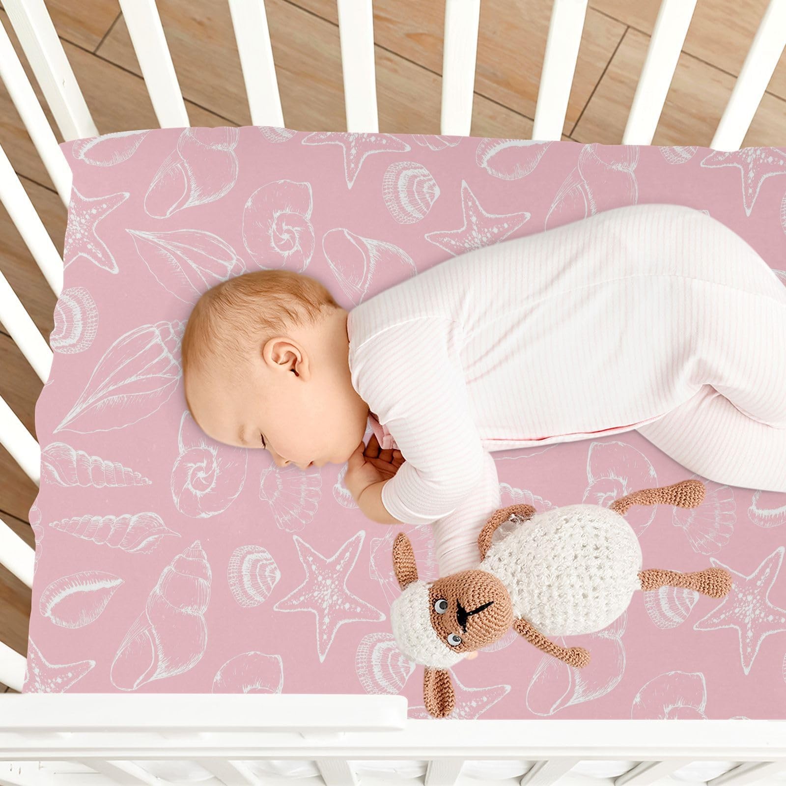 Pink Seashells Crib Sheets for Boys Girls, 52x28 Inch Soft and Breathable Pac...