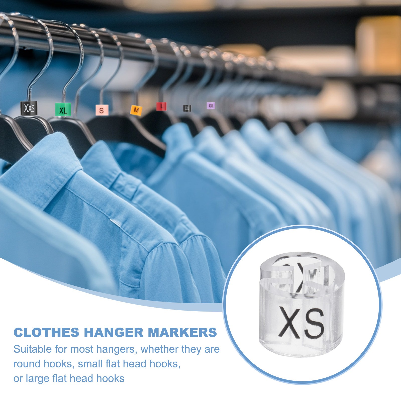 140 Pcs Clothes Hanger Markers, XS Size Tag Fit 3mm Rod, Clear