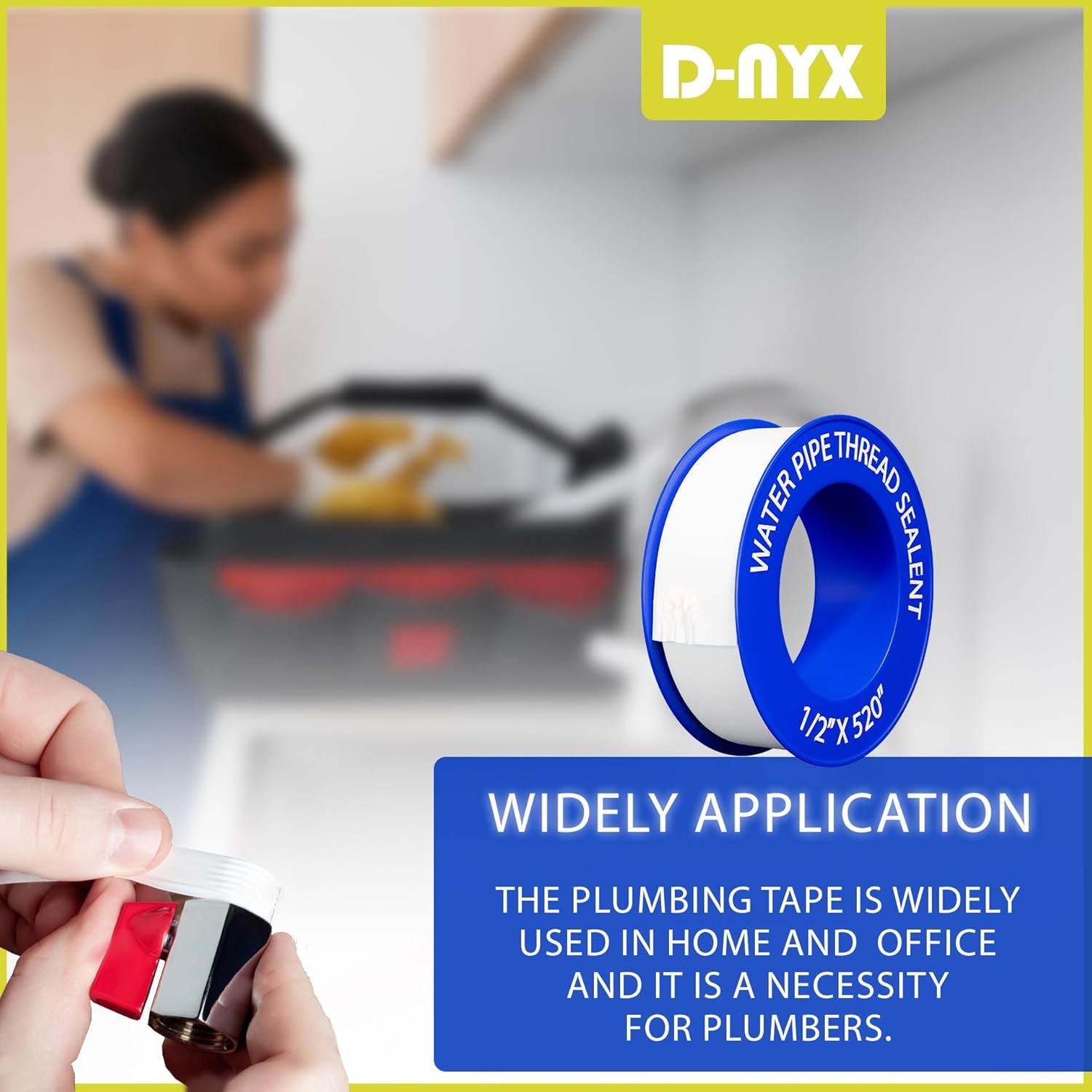 PTFE Tape 1 Roll 1/2 Inch Width 520 Inches Long Thread Seal Tape for Water Pipe