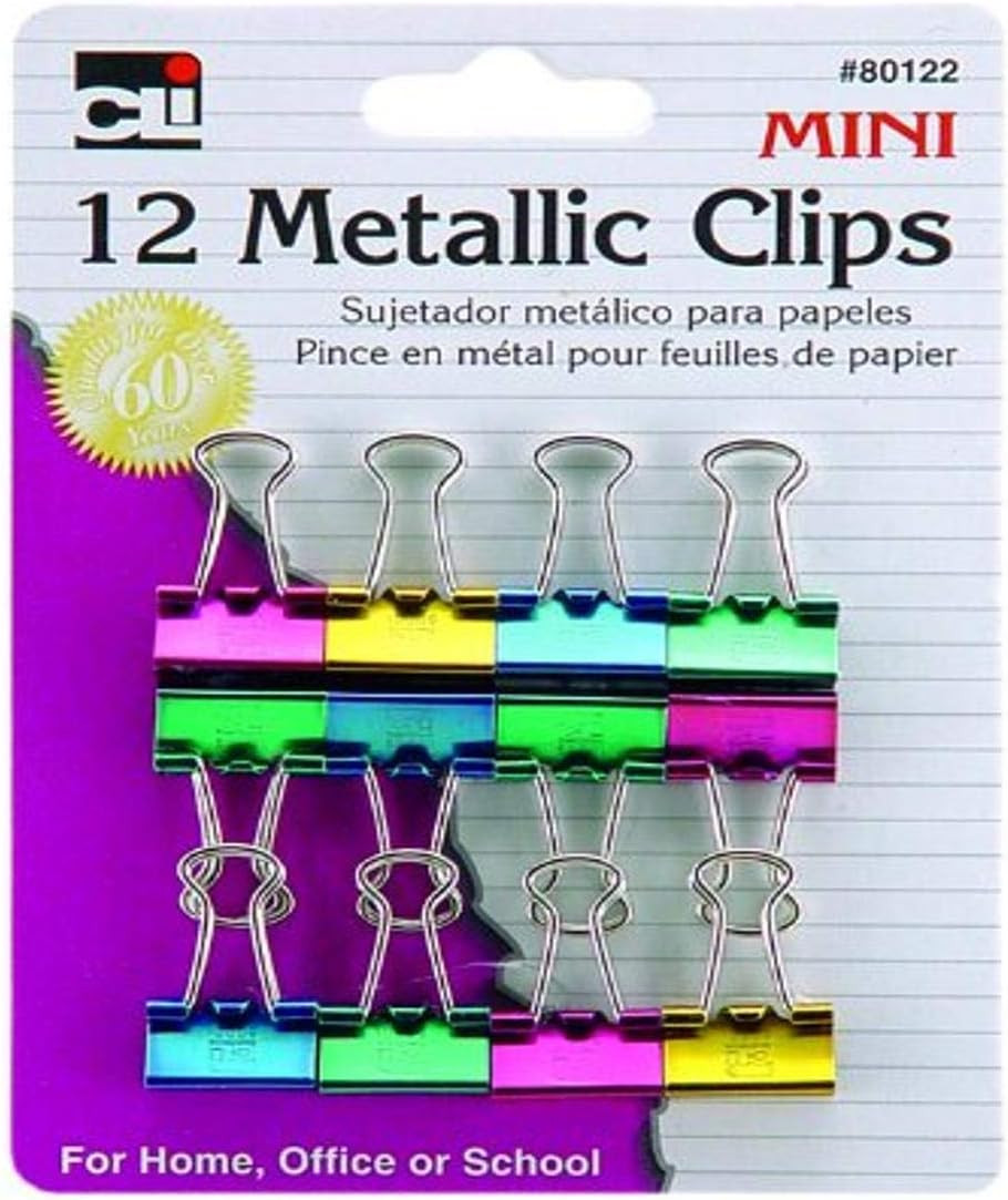 Binder Clips, Metallic, Assorted Colors, Mini, 12-Pack 80122