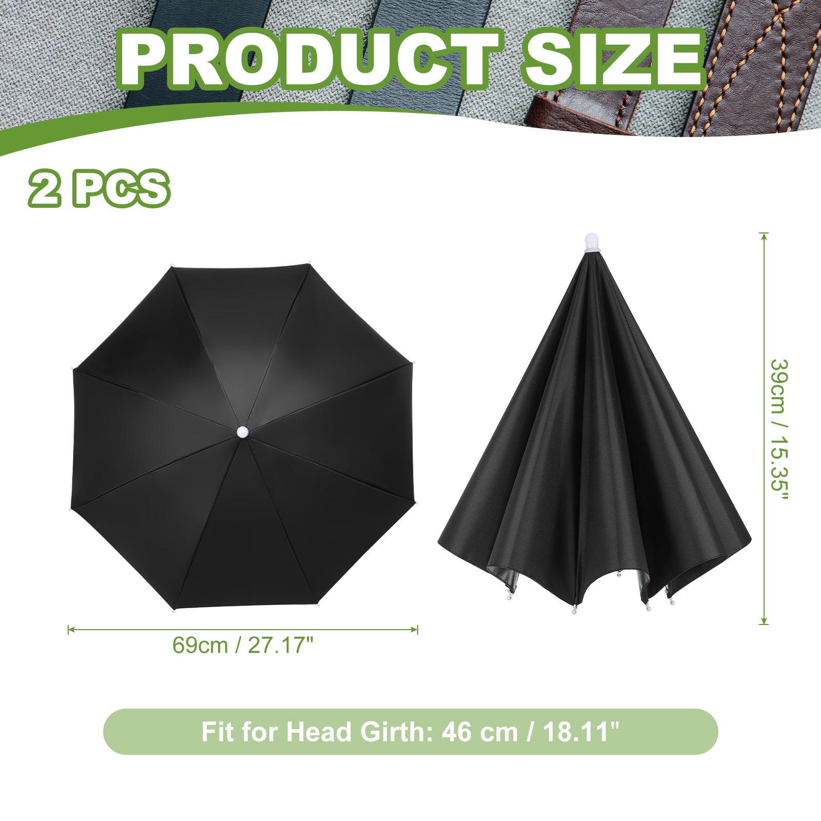 Umbrella Hat Fishing Hat with Elastic Band for Fishing 2 Pack, Black