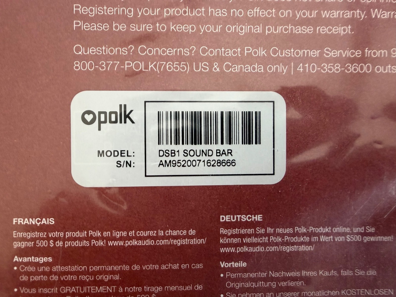 как выглядит Polk DSB1 Sound Bar Bluetooth With Remote Cords Instructions фото