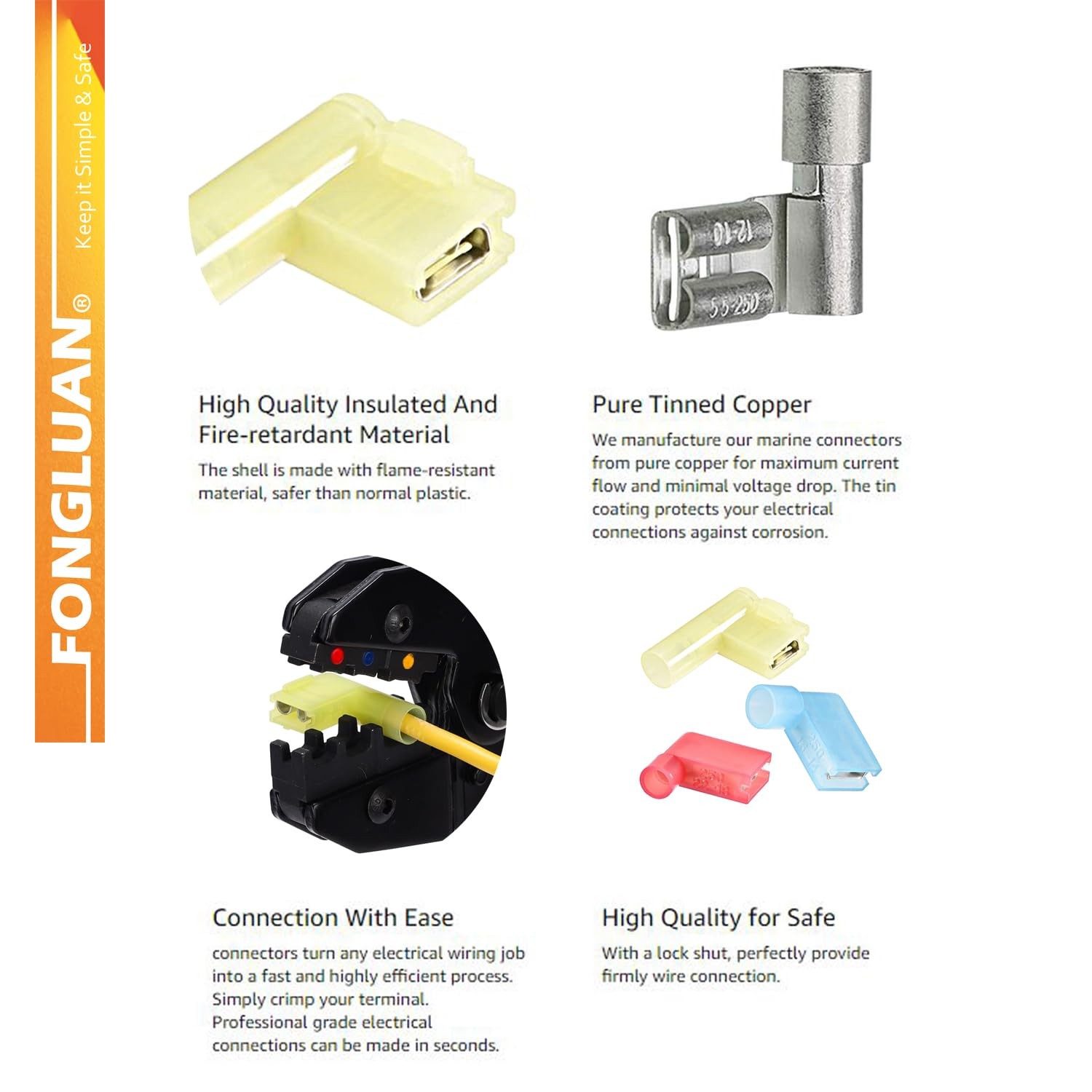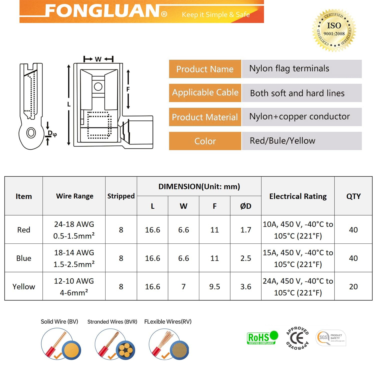 100pcs Nylon Flag Spade Female Insulated Terminals 24-10 Gauge Quick Disconne...