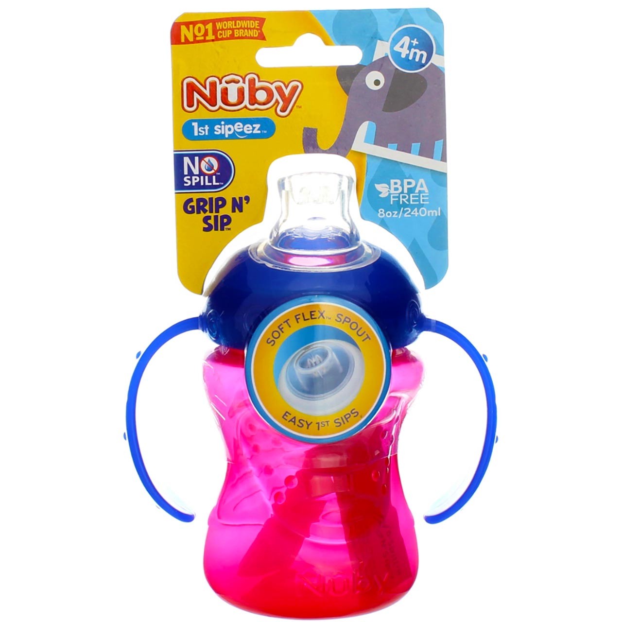 Nuby Grip N Sip Super Spout Sippy Cup with Handles, 4m , 8 oz