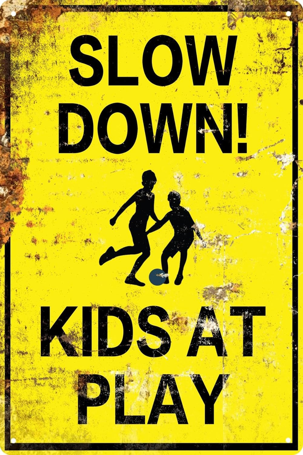 Children at Play Safety Signs for Slow down Kids Street Signs Metal Tin Sign Fun