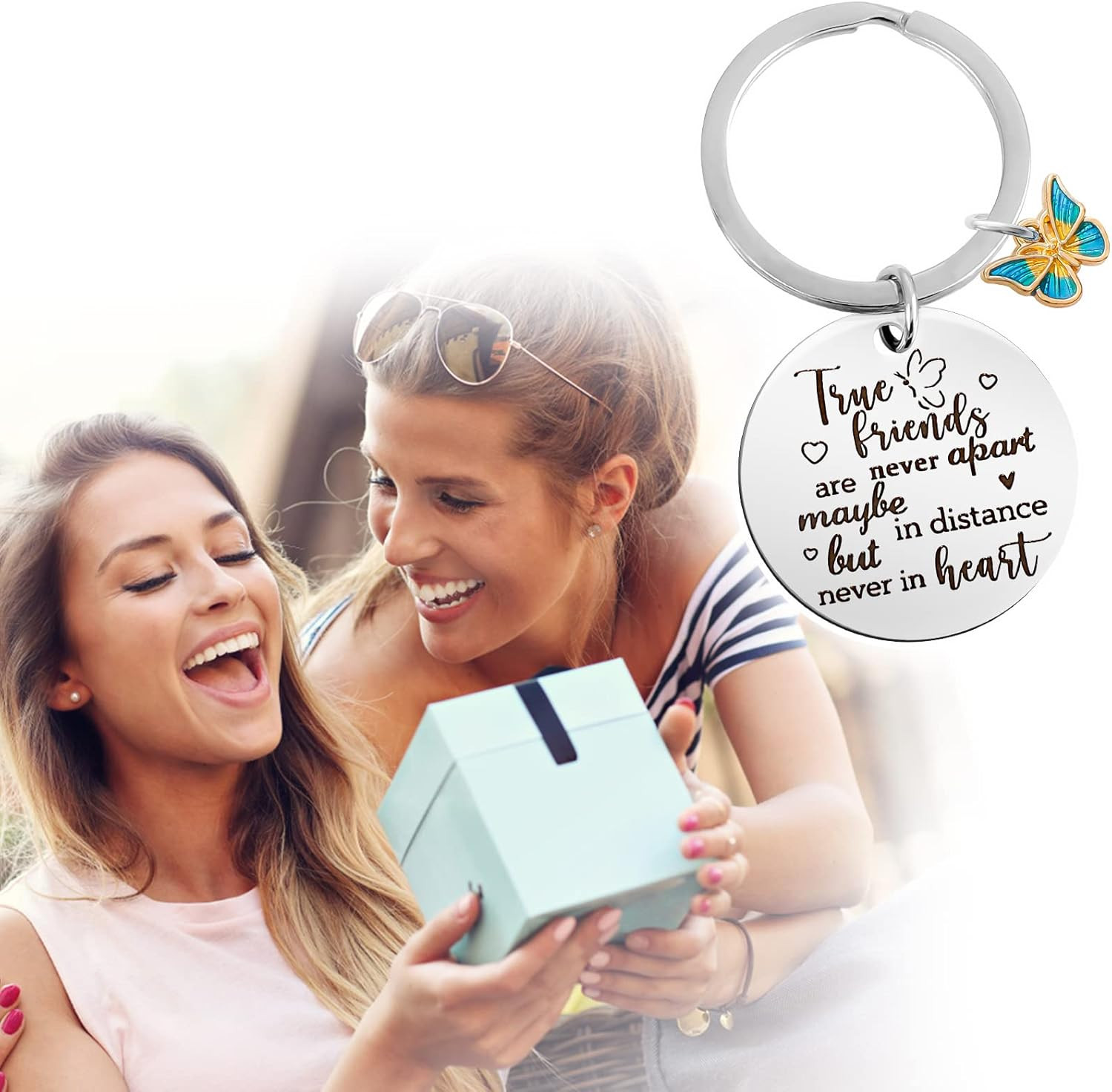2Pcs Best Friend Birthday Gifts for Women Friendship Keychain, Long Distance Fri
