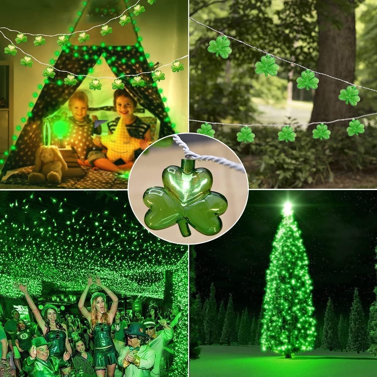 St Patricks Day 10 Ft 20 LED Shamrock String Lights Battery Decor For Home Party
