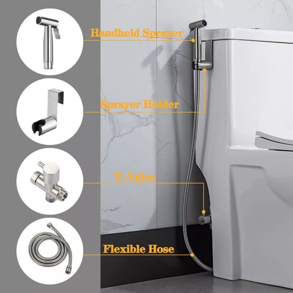 как выглядит Toilet Shattaf Adapter Hose Bidet Spray Stainless Steel Handheld Shower Head US- фото