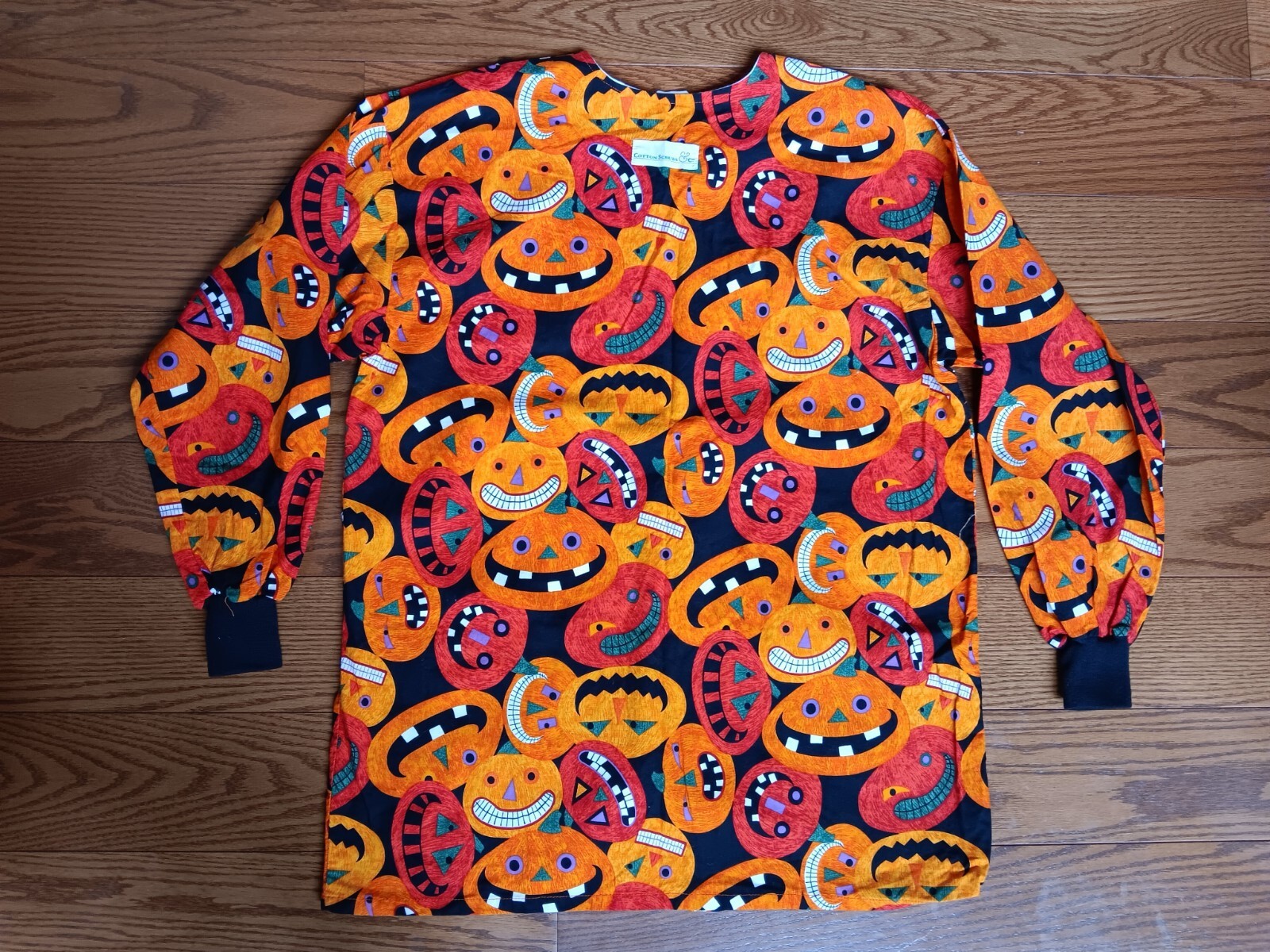 как выглядит Cotton Scrubs Co Long Sleeve Medical Top, Halloween, Pumpkins, See Measurement фото