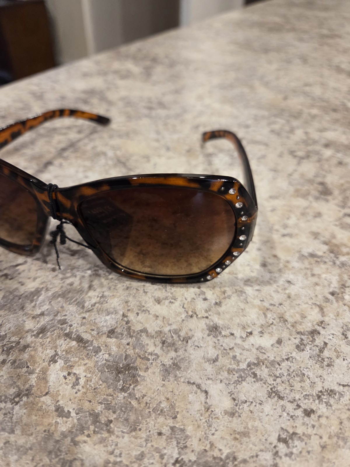 Funky Vintage RETRO Style SUN GLASSES Large Tortoise Frame w/ Rhinestones