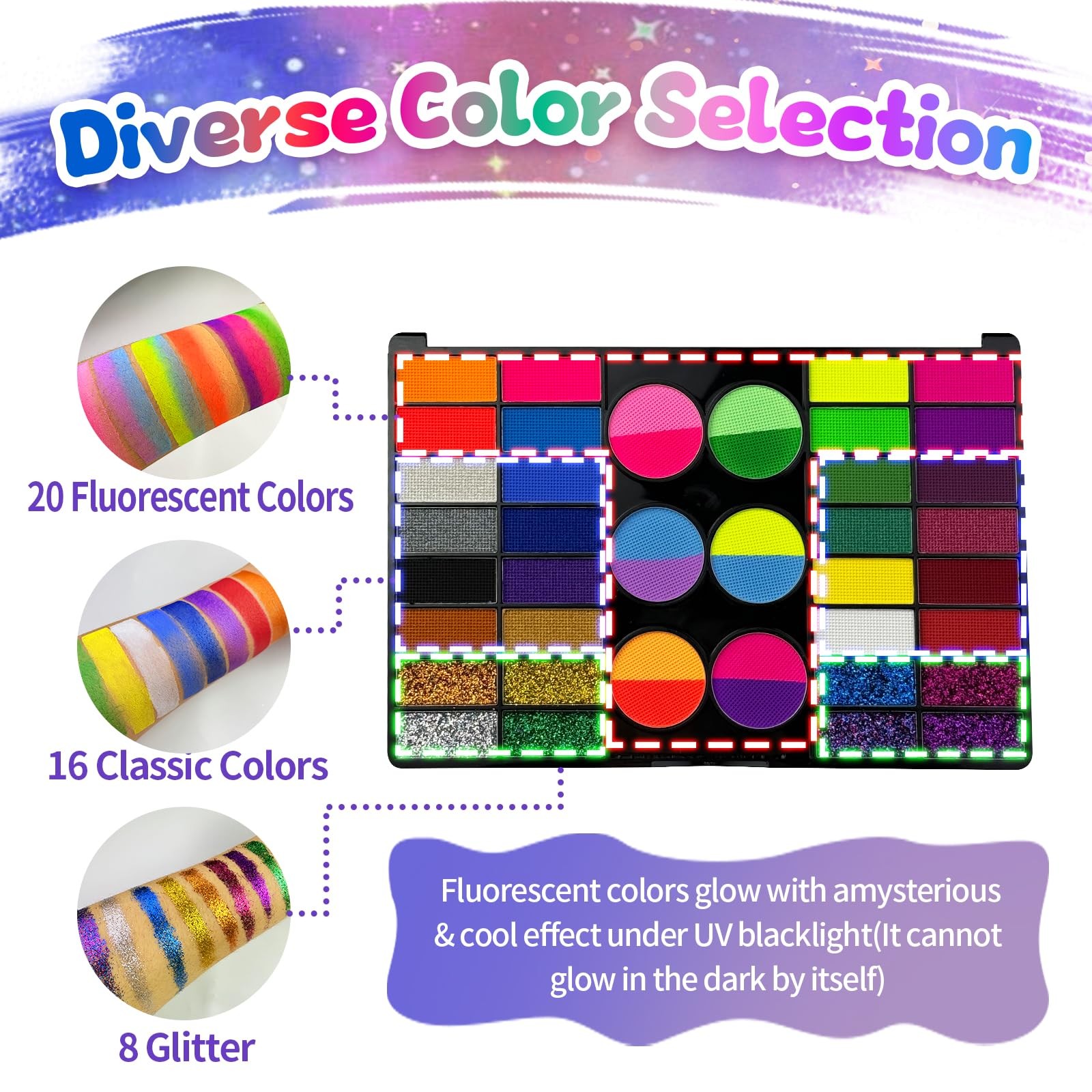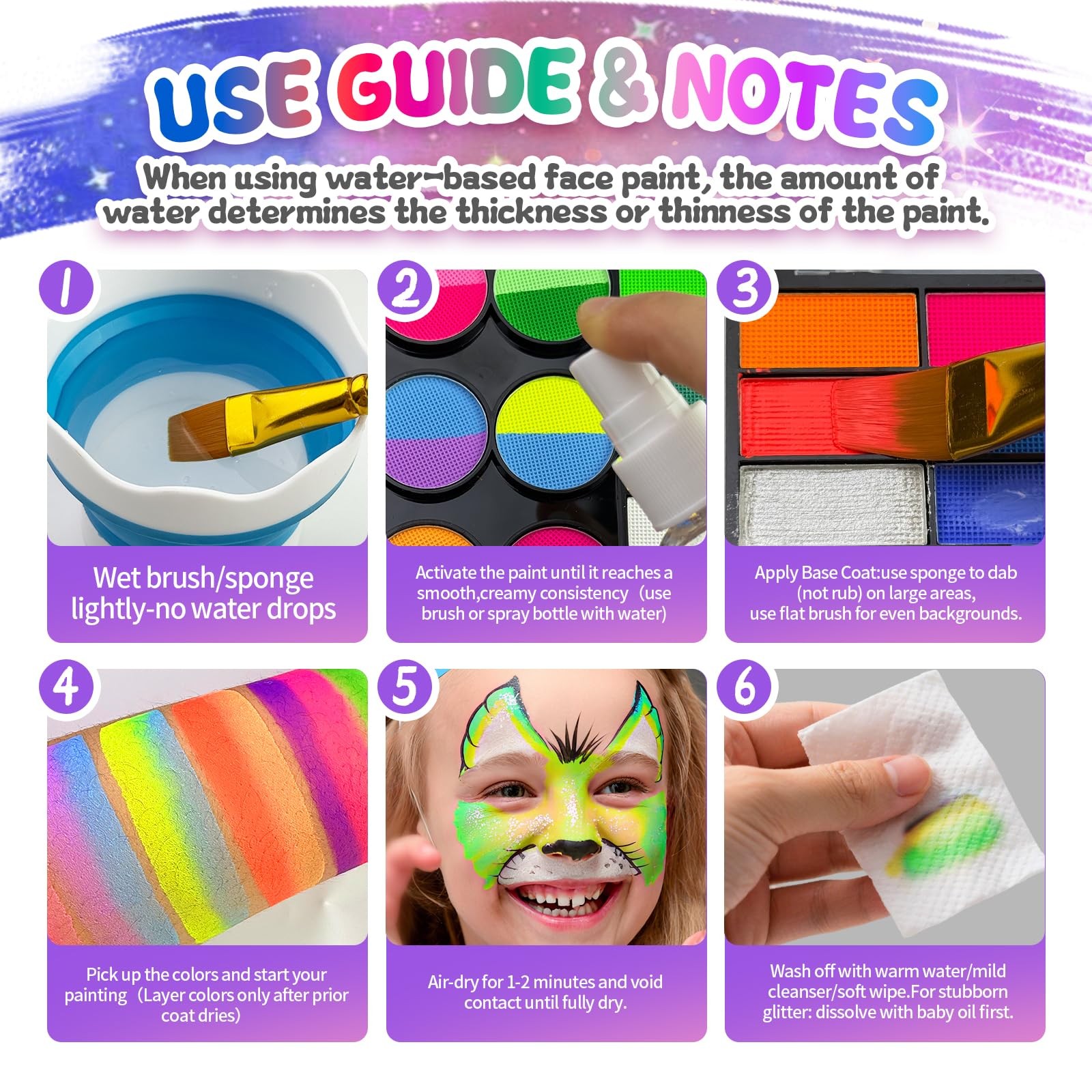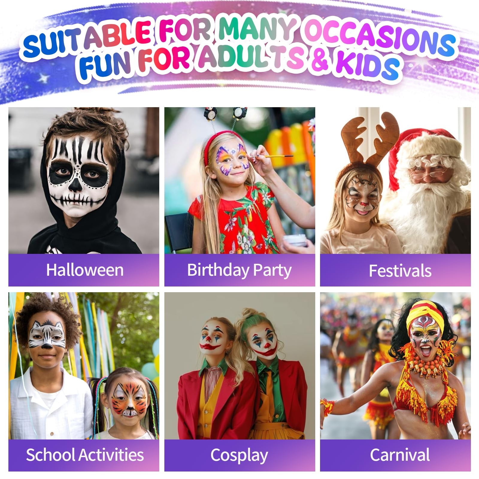 Professional Face Painting Kit for Kids,42 Color Water Activated Face Paint w...