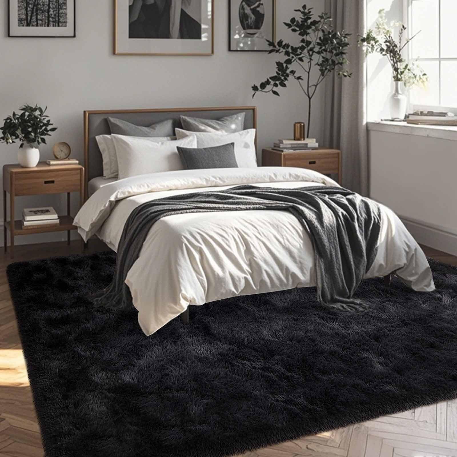 FinRe c 5x8 Feet Black Rugs for Living Room Bedroom, Fluffy Shaggy Area Rug,