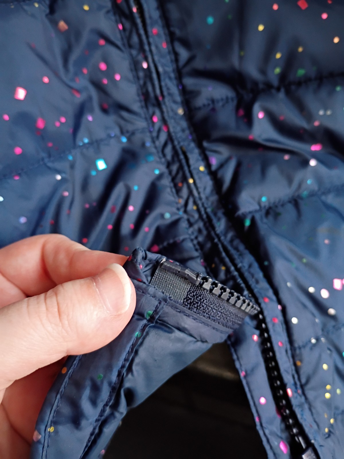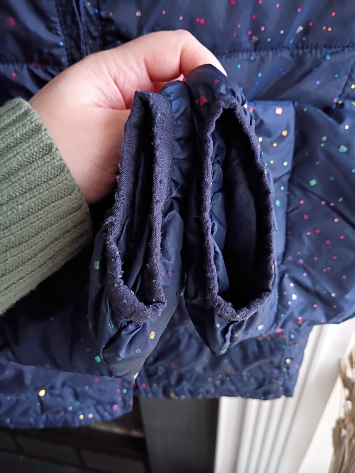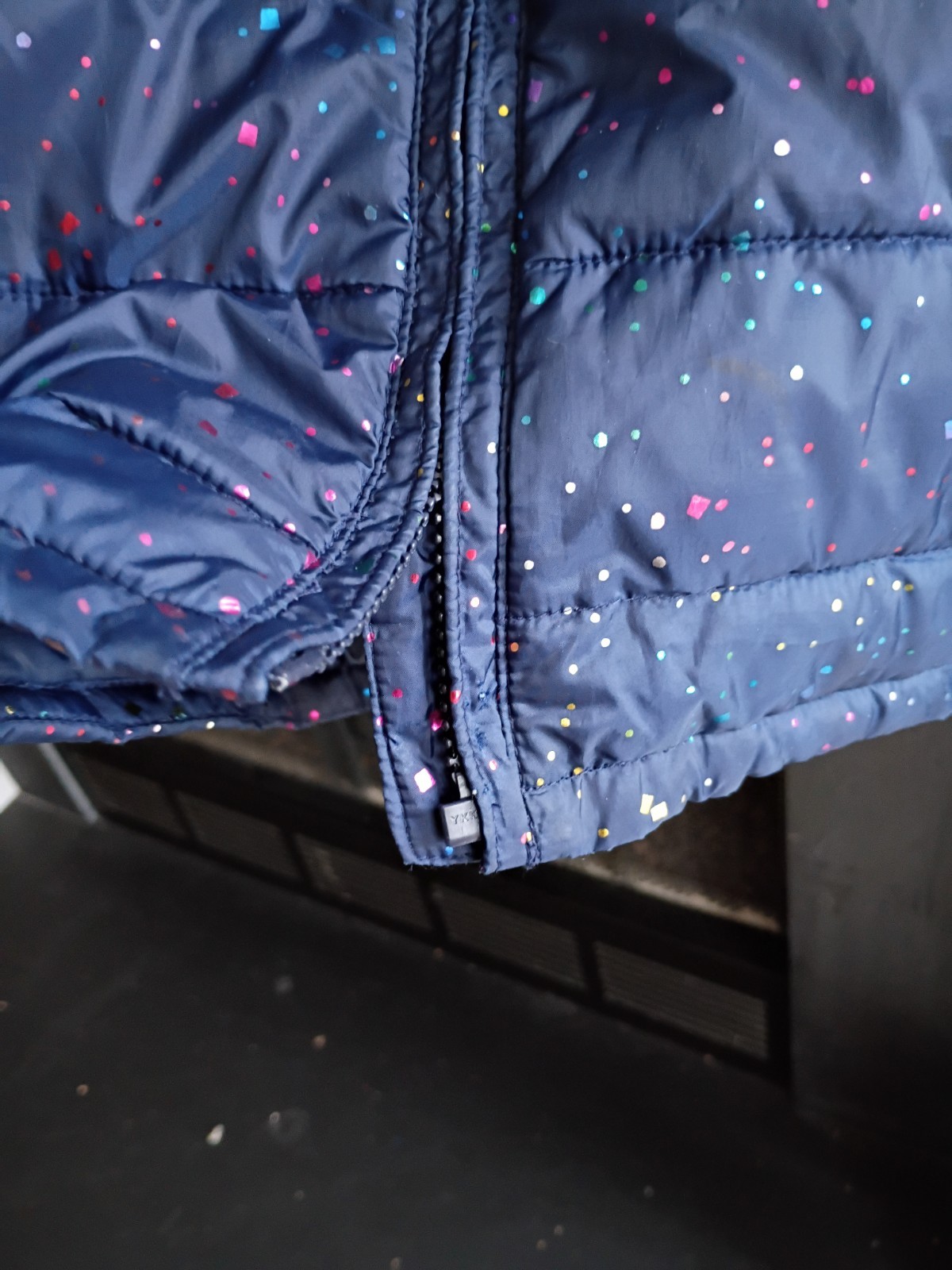 как выглядит Gap Kids L Navy/Metallic Rainbow Glitter Puffer Jacket фото