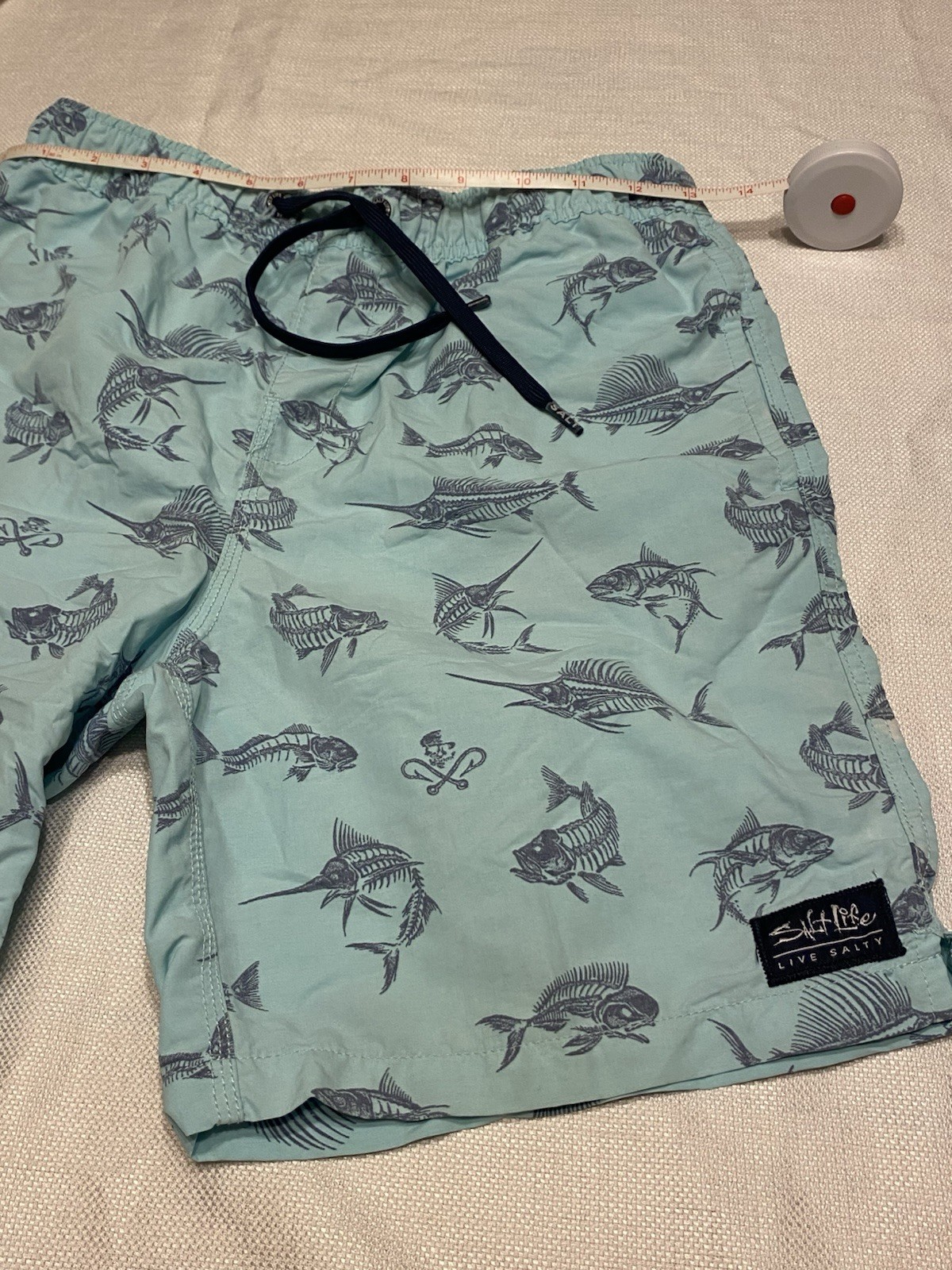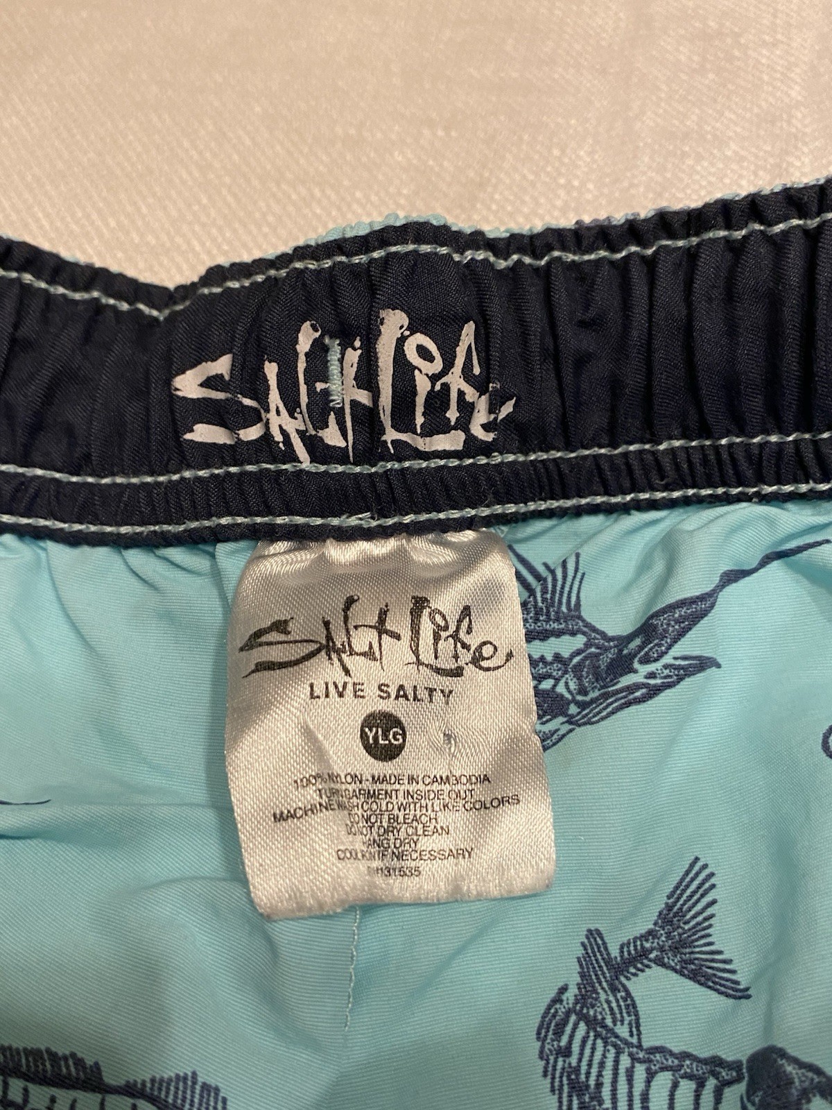 Salt Life SLX-QD Aqua Swim Trunks Youth Boys L 14-16 Blue With Fish Designs