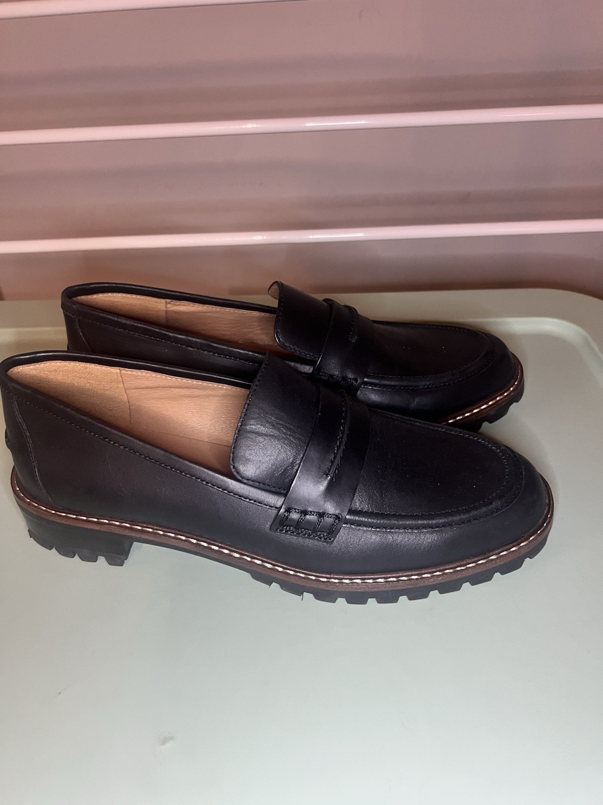Madewell The Corinne Lugsole Penny Loafers Women s Sz 8 Black Leather Academia