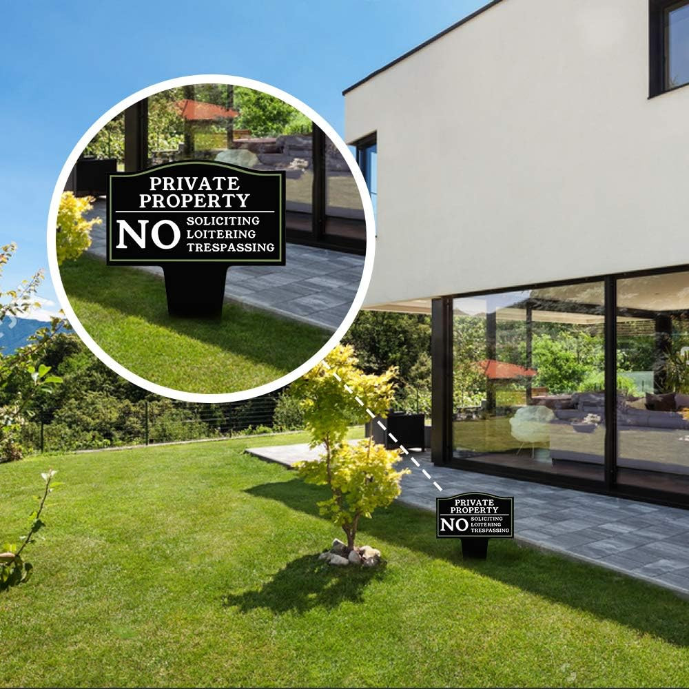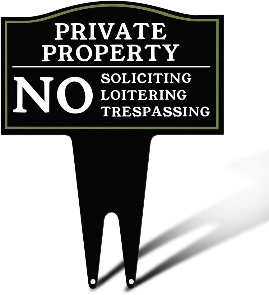 Private Property No Trespassing, No Soliciting and No Loitering Signs with Stake