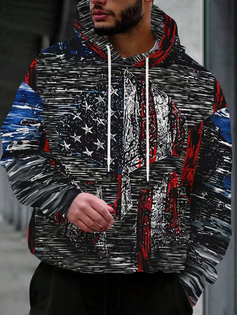 как выглядит American Flag and Red Line 3D All Over Print Hoodie- Adults Youth фото