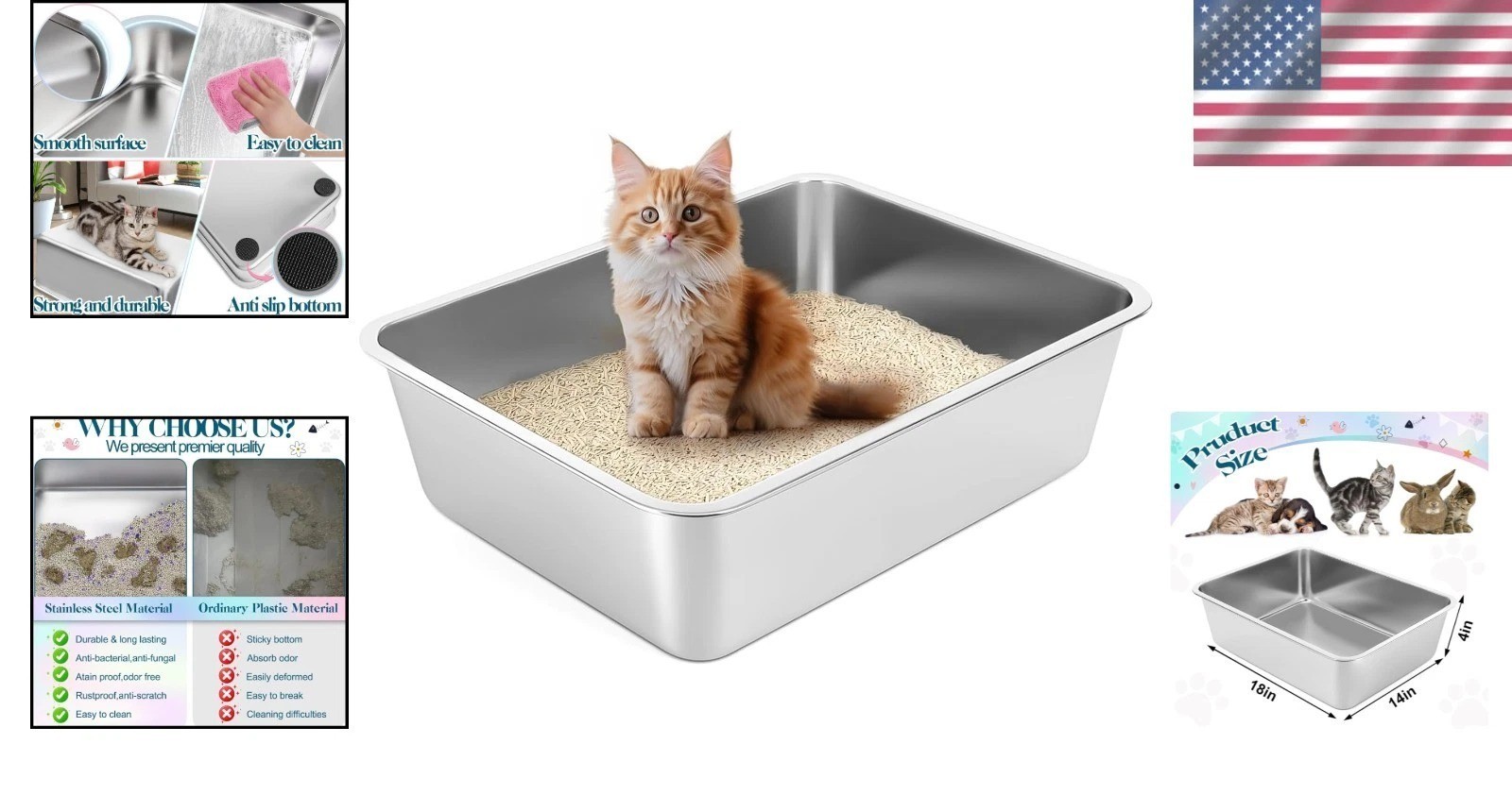 Included Components: Stainless Steel Open Cat Litter Box