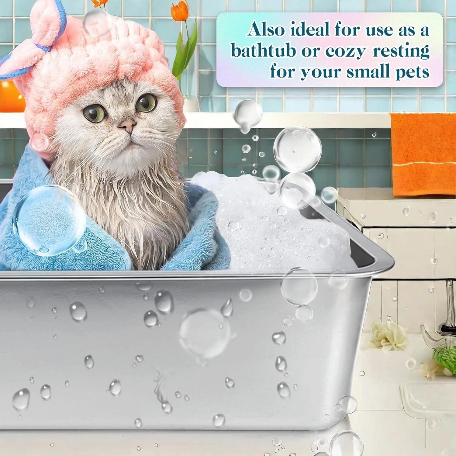 как выглядит Stainless Steel Cat Litter Box with High Sides, Extra Large Open Metal Litter Pa фото