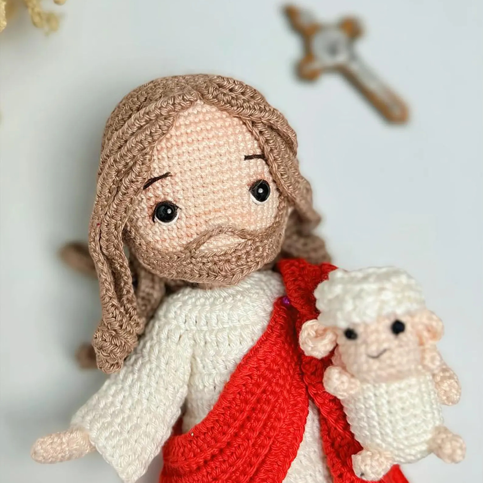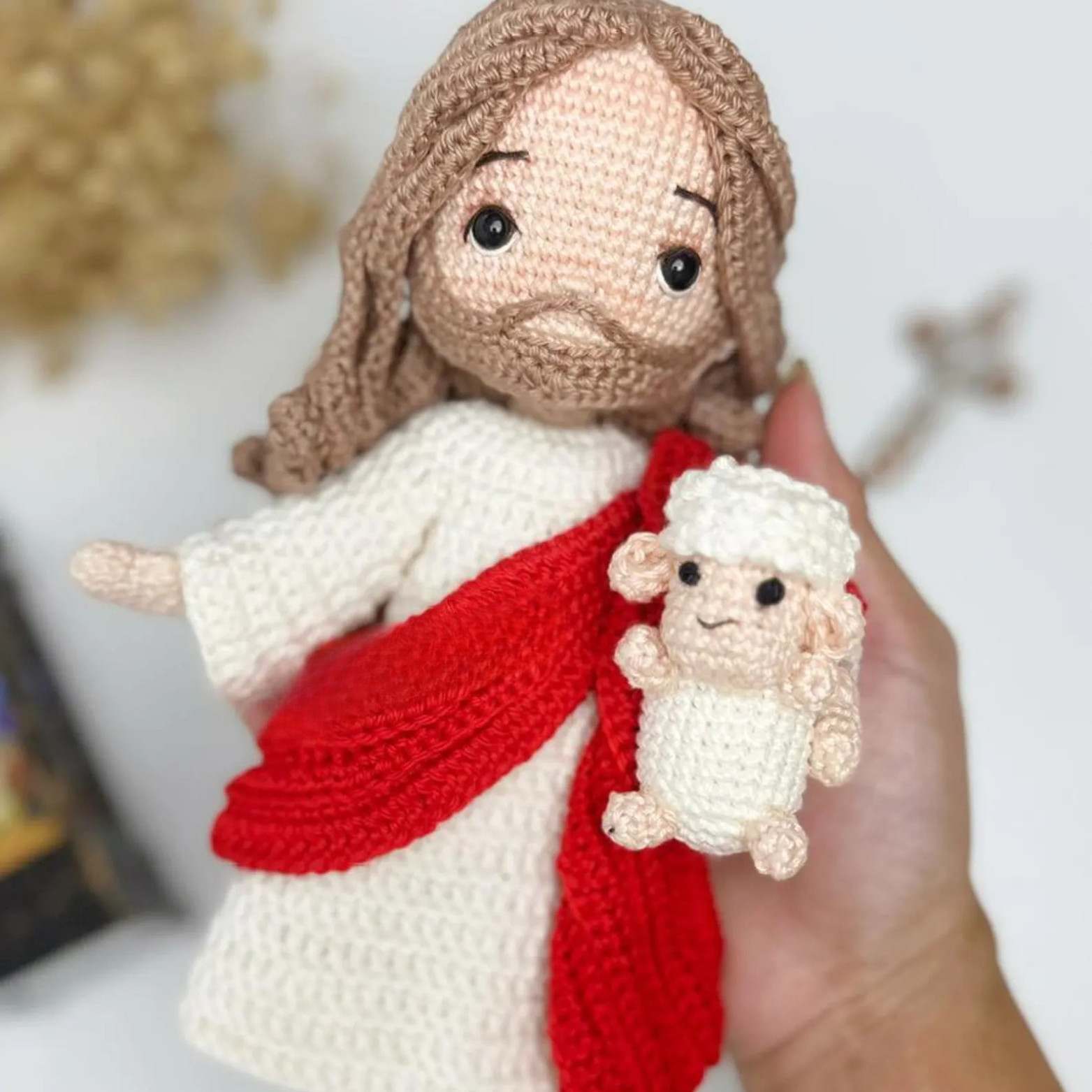 Handmade Jesus Christ Amigurumi Crochet, Christian Doll with Lamb Gift 8 Inch