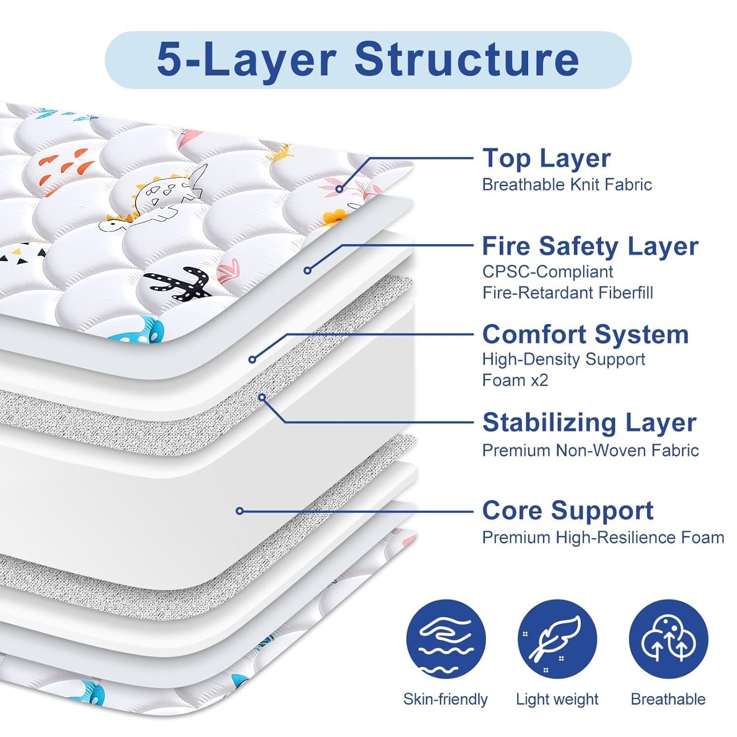 Crib Mattress Toddler Mattress Firm Hypoallergenic Dual-Sided Comfort Safe Sleep