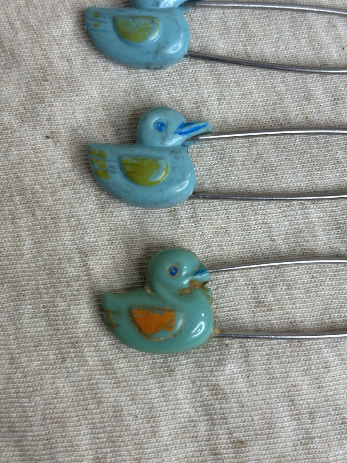 7 VTG Baby Diaper Pins Safety Pins Ducks Plain Yellow Blue Green White