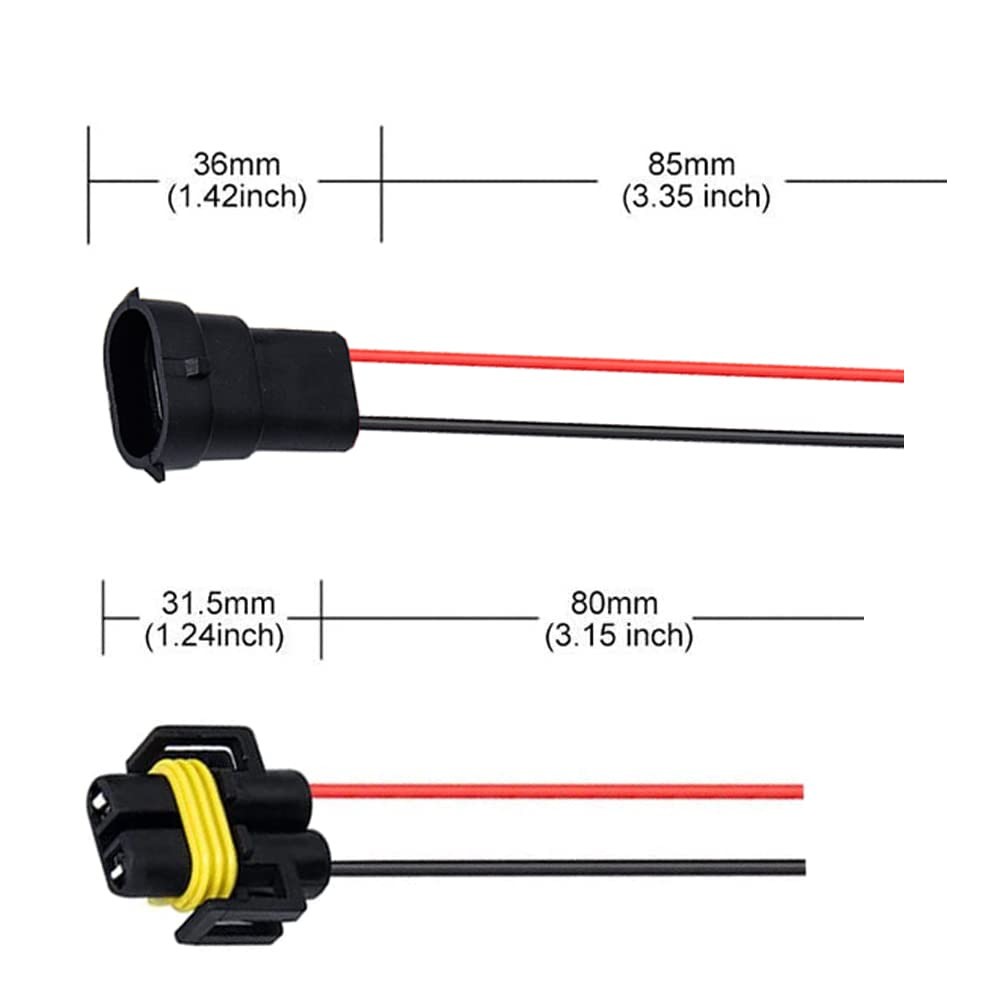 BlyilyB Set-2 H11 H8 Pigtail Socket Wiring Harness Harness Female and Male Conne