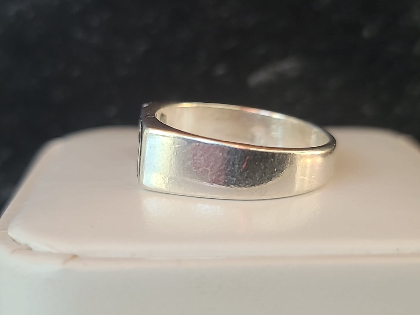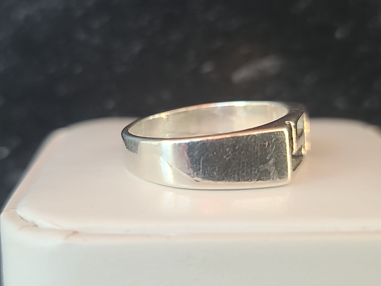 925 Sterling Silver Greek Key Pattern Statement Ring Size US 8 Vintage