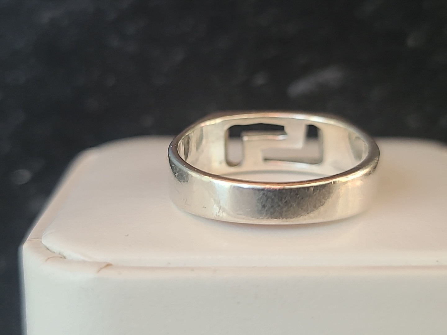как выглядит 925 Sterling Silver Greek Key Pattern Statement Ring Size US 8 Vintage фото