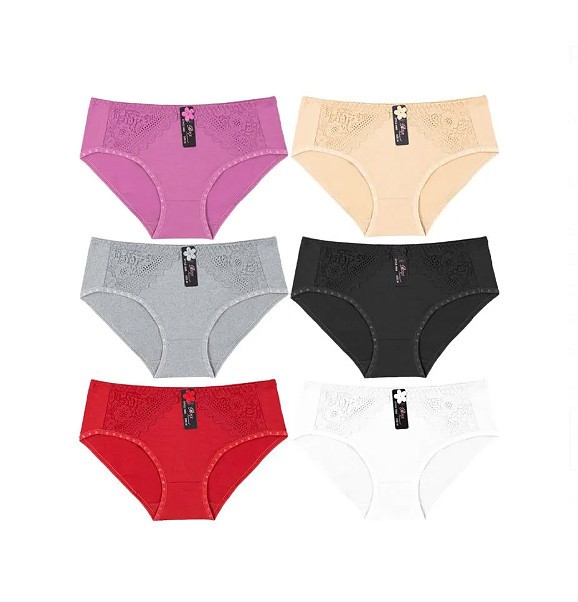 как выглядит Womens Briefs Stretch Cotton Blend Rose Lace Detailed Panties 12 Pack фото