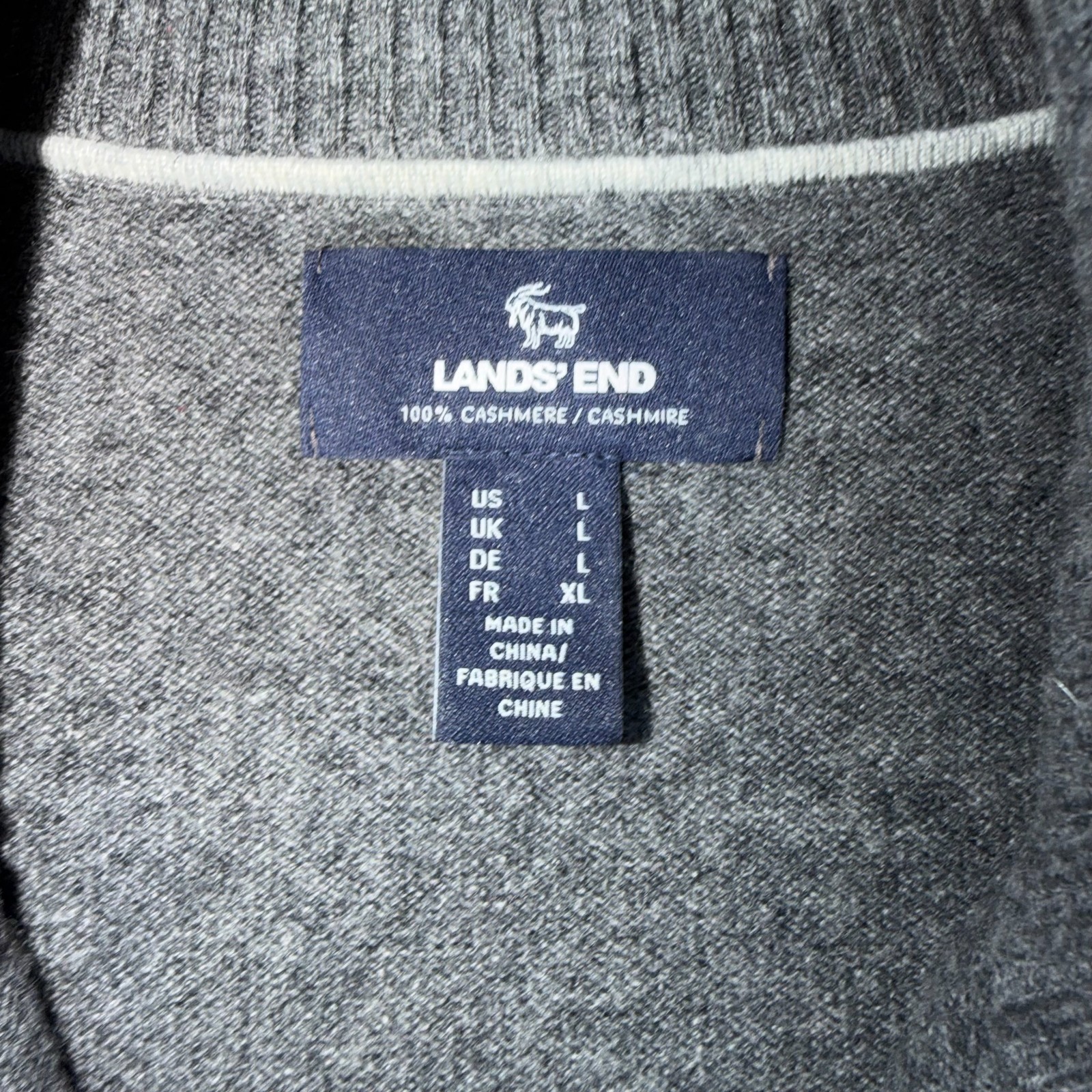 Lands' End Sweater Mens Large Gray 100 Cashmere Quarter Zip Mock Neck Pullover