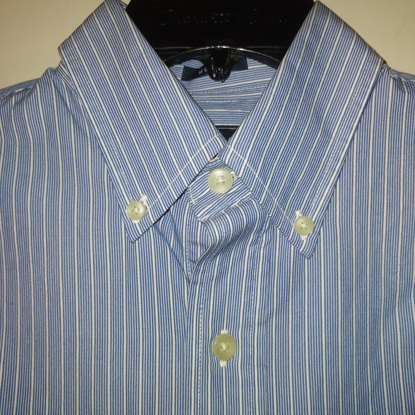 как выглядит Abercrombie Fitch "Muscle" Blue/White Cotton LS Dress Shirt w/Pocket Men