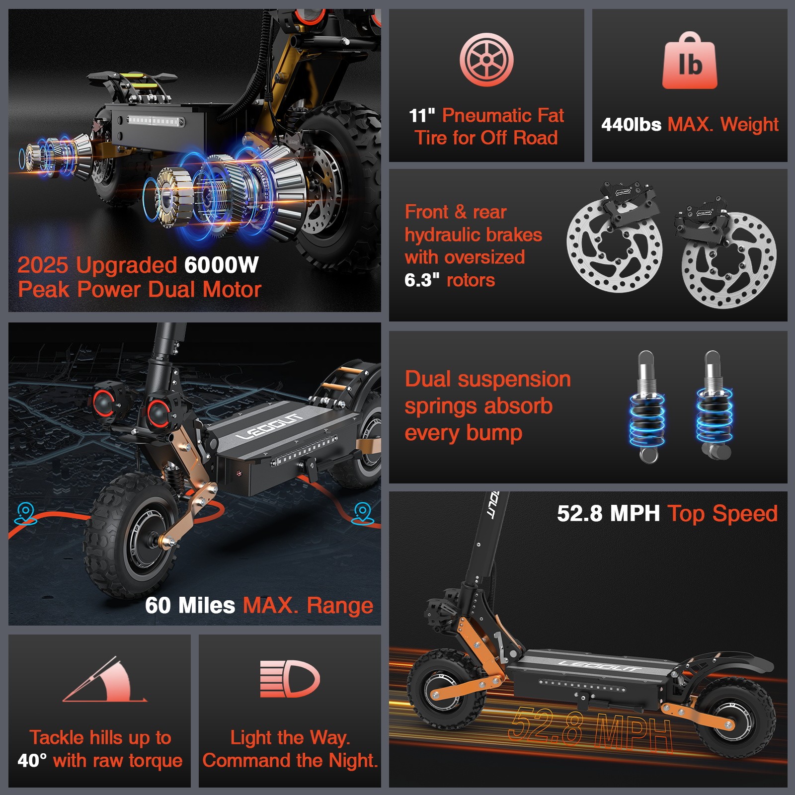 Electric Scooter for Adult 6000W Dual Motor 53MPH 60V 29AH Folding Fast Escooter