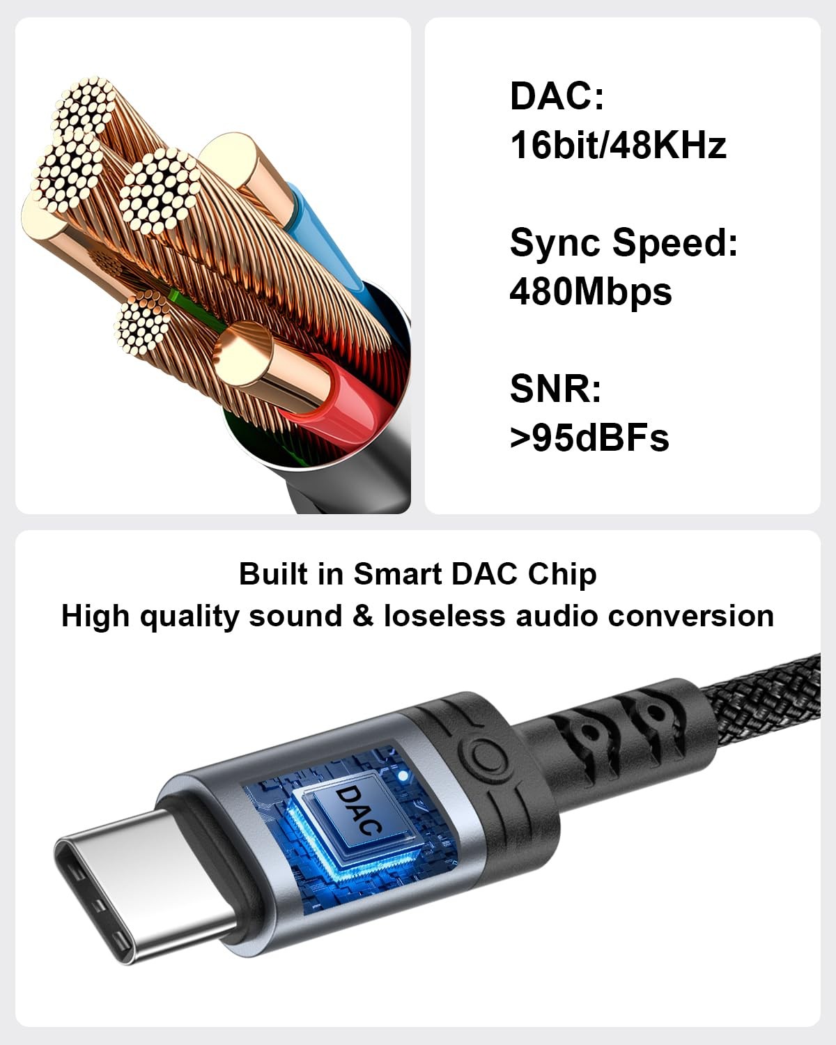 USB C to 3.5mm Jack Audio Adapter, C Aux Headphone Adapter USBC 1Pack