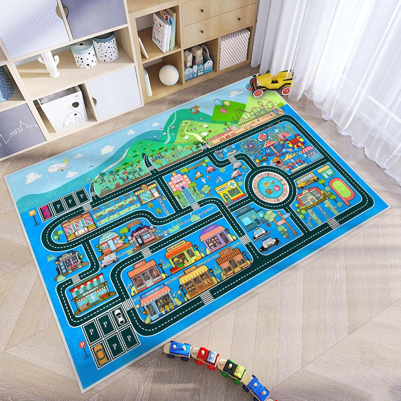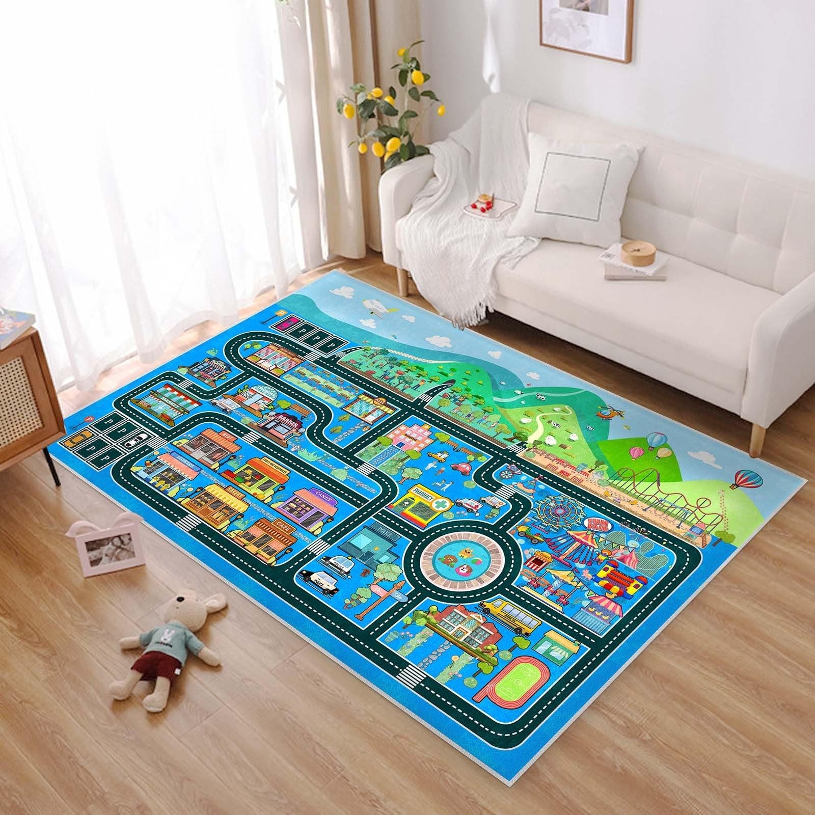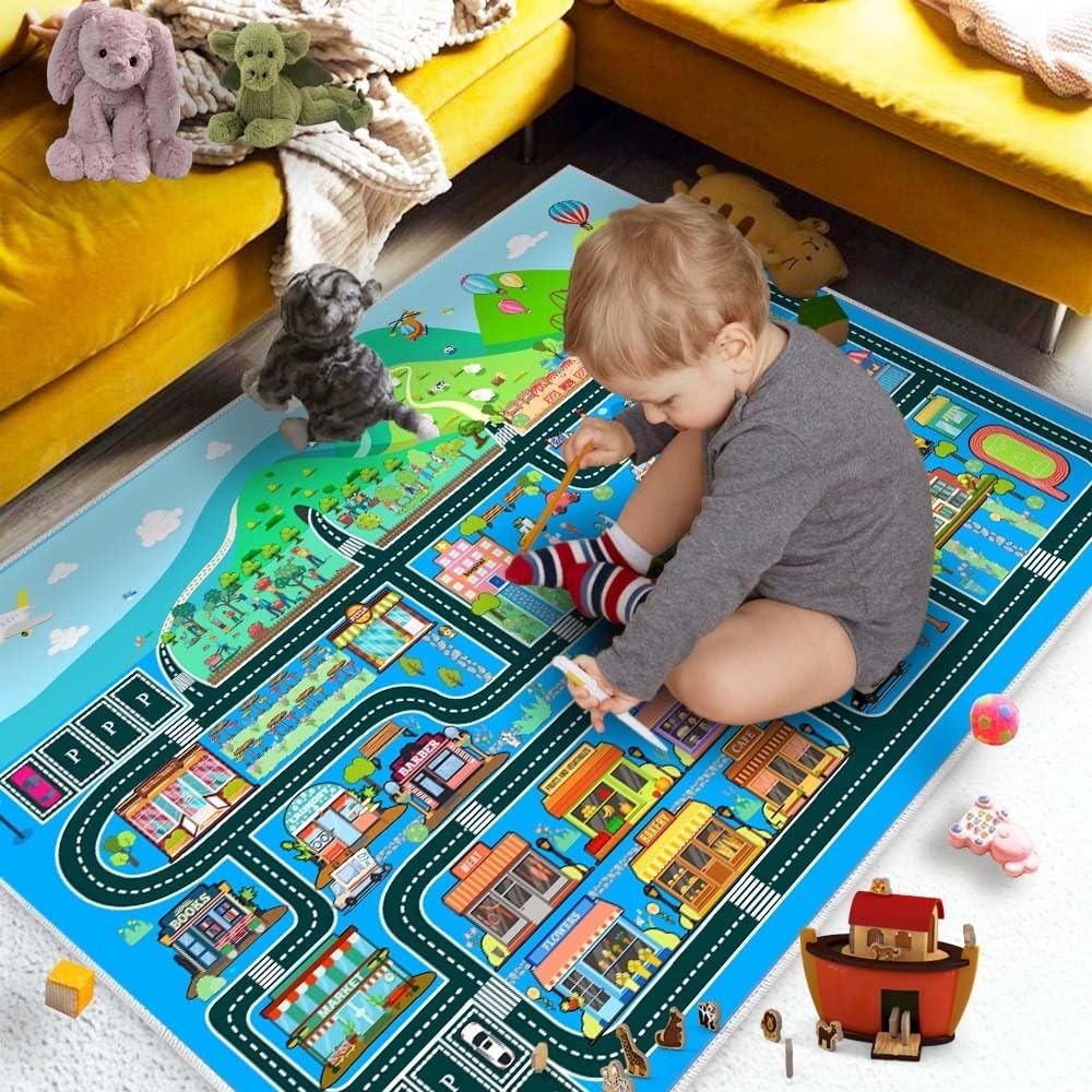 Kids Car Rug Play Mat,63''x94'' Learning and Fun City Road Map Play Mat for P...