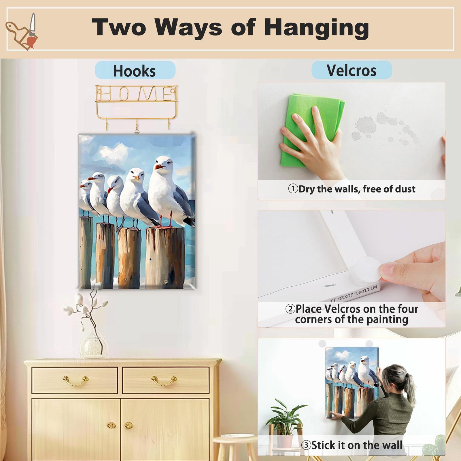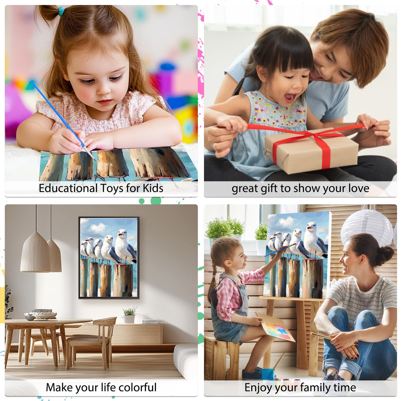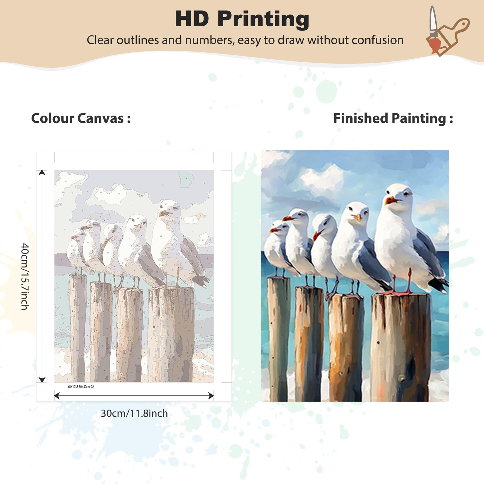 Framed Paint by Numbers Kits for Adults Animals Seagulls, DIY Acrylic Paint b