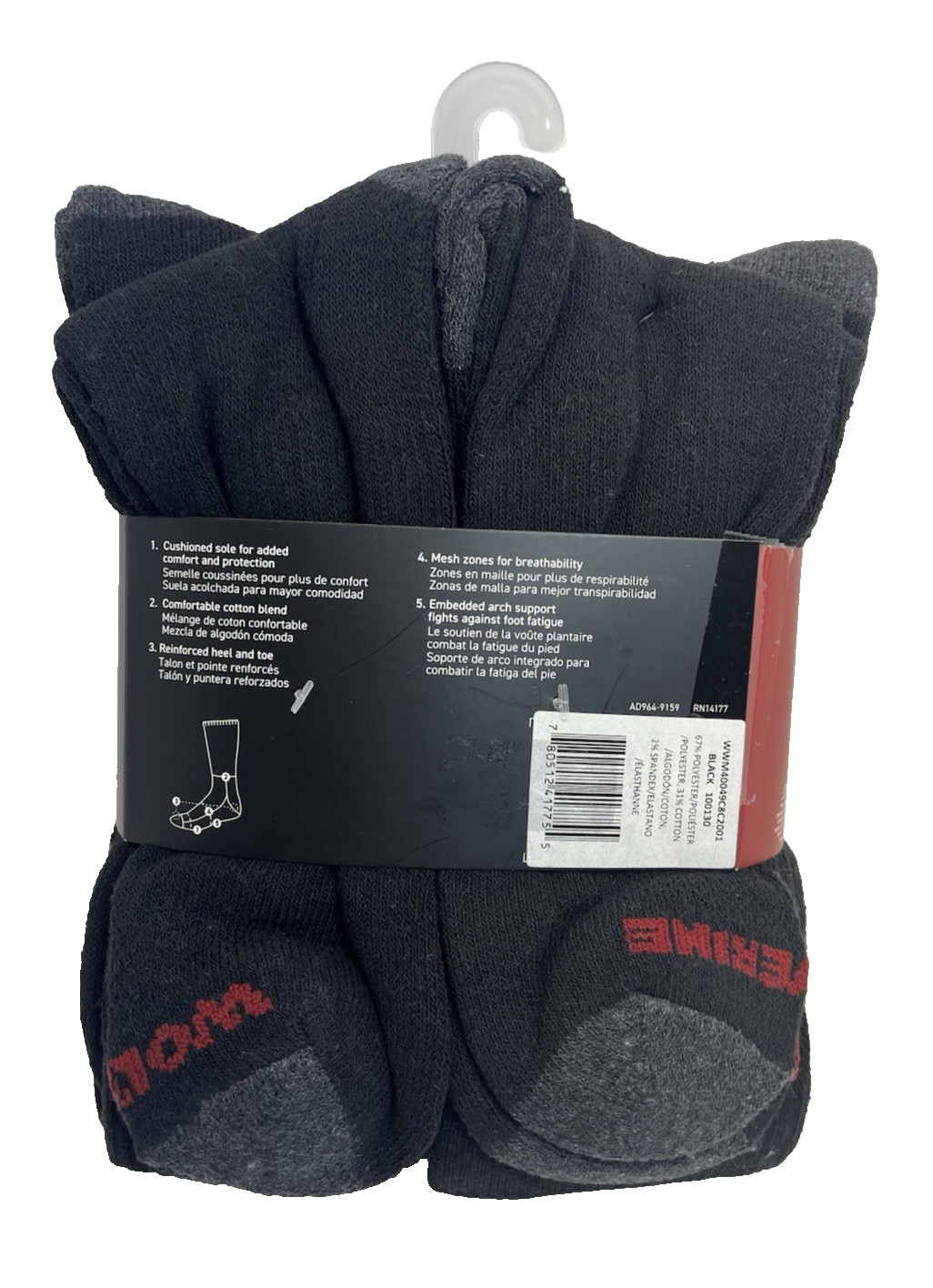 как выглядит New WOLVERINE Mens Shoe Size 7-12 Heavy Duty Crew Work Socks Black 8-Pairs фото
