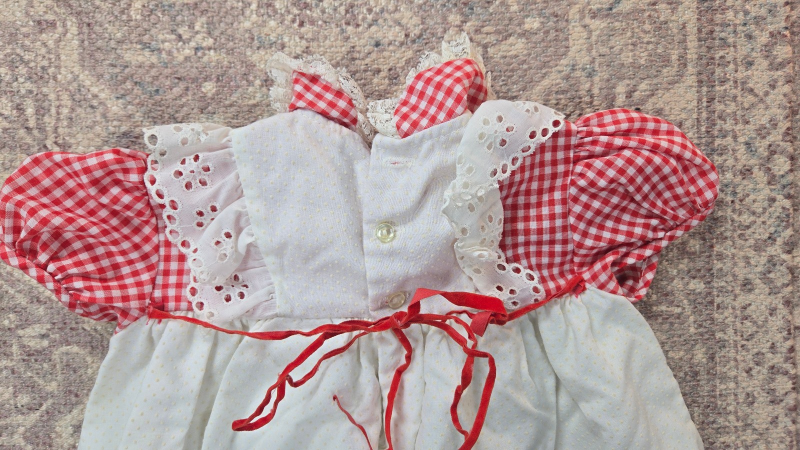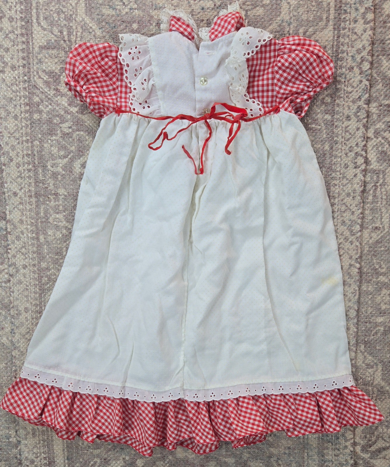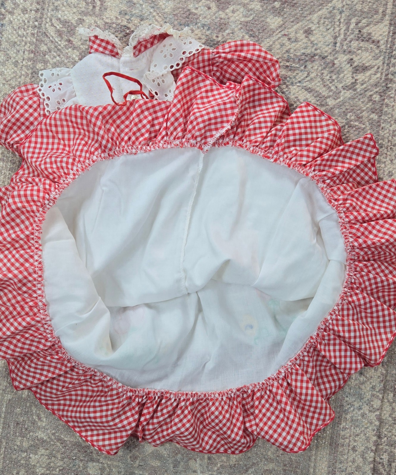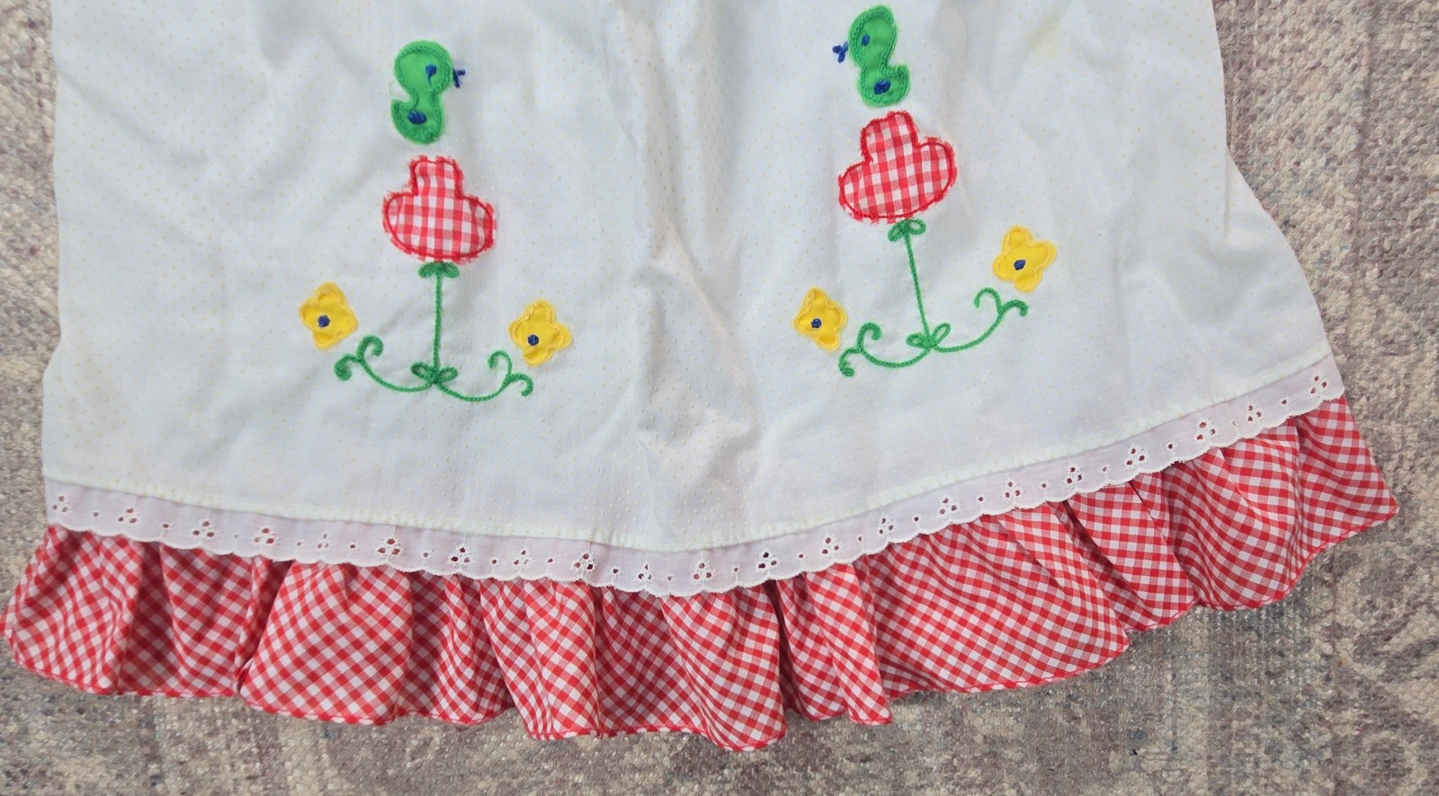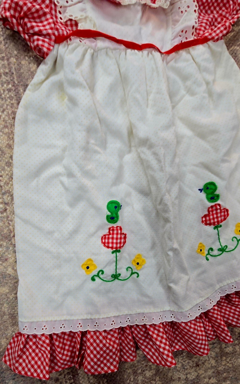 VINTAGE 1970s Red White Gingham w/Chicks Toddler Girl's Dress Size 9-12 months