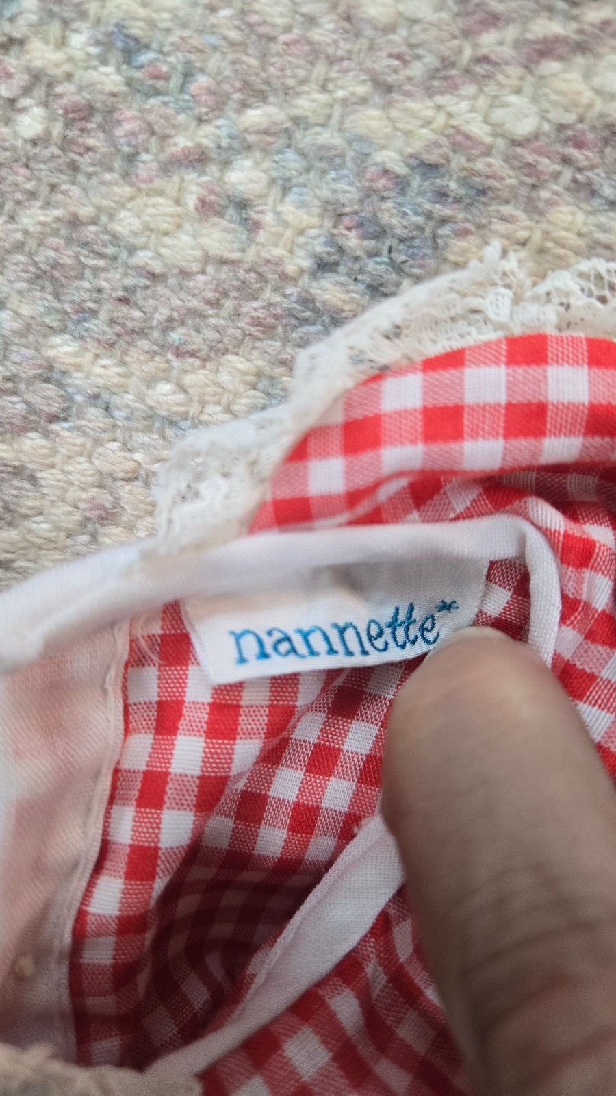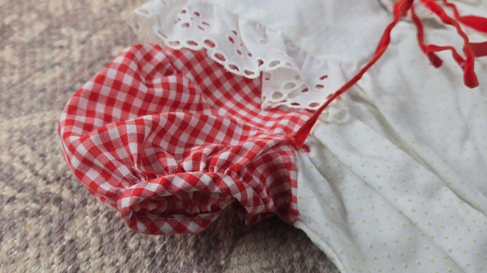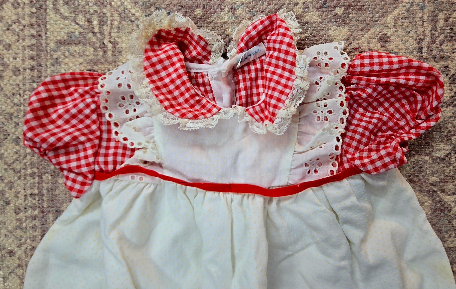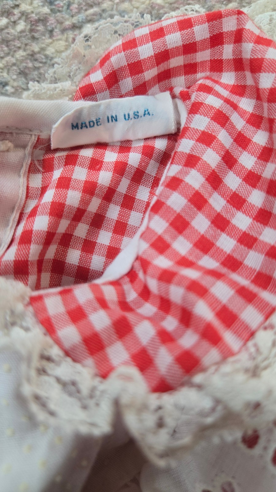 как выглядит VINTAGE 1970s Red White Gingham w/Chicks Toddler Girl