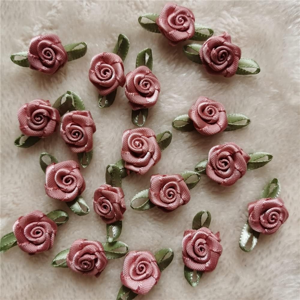 100Pcs 15Mm Multicoloured Mini Rose Flowers Satin Ribbon Bows Appliques DIY